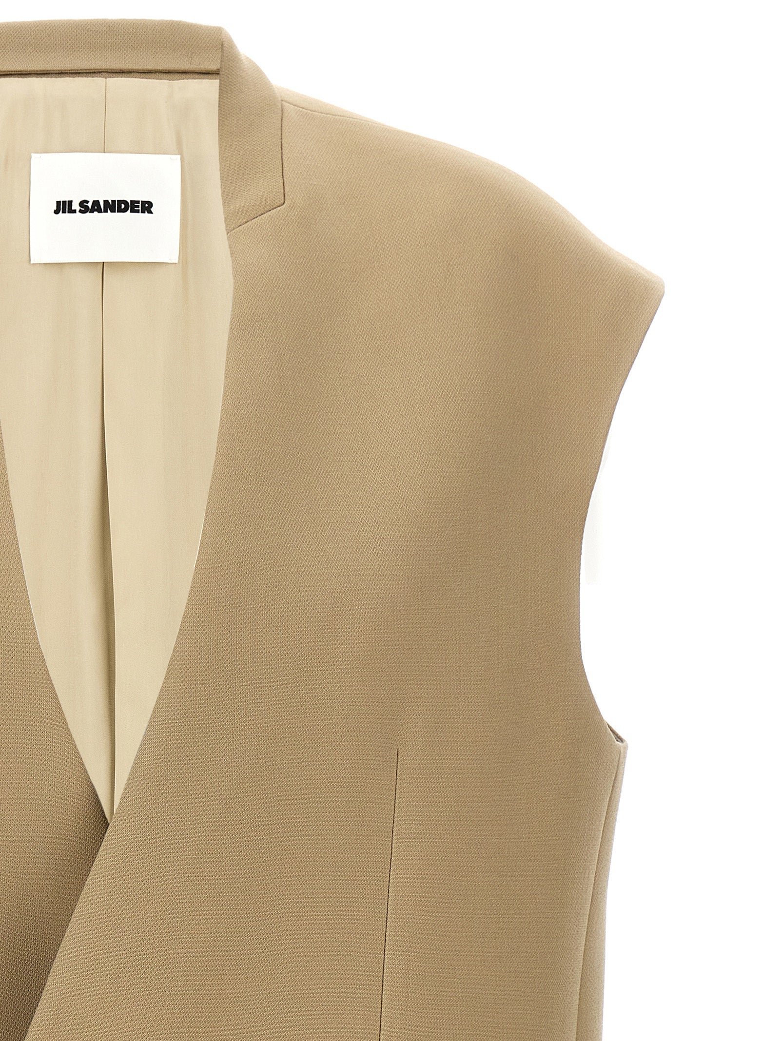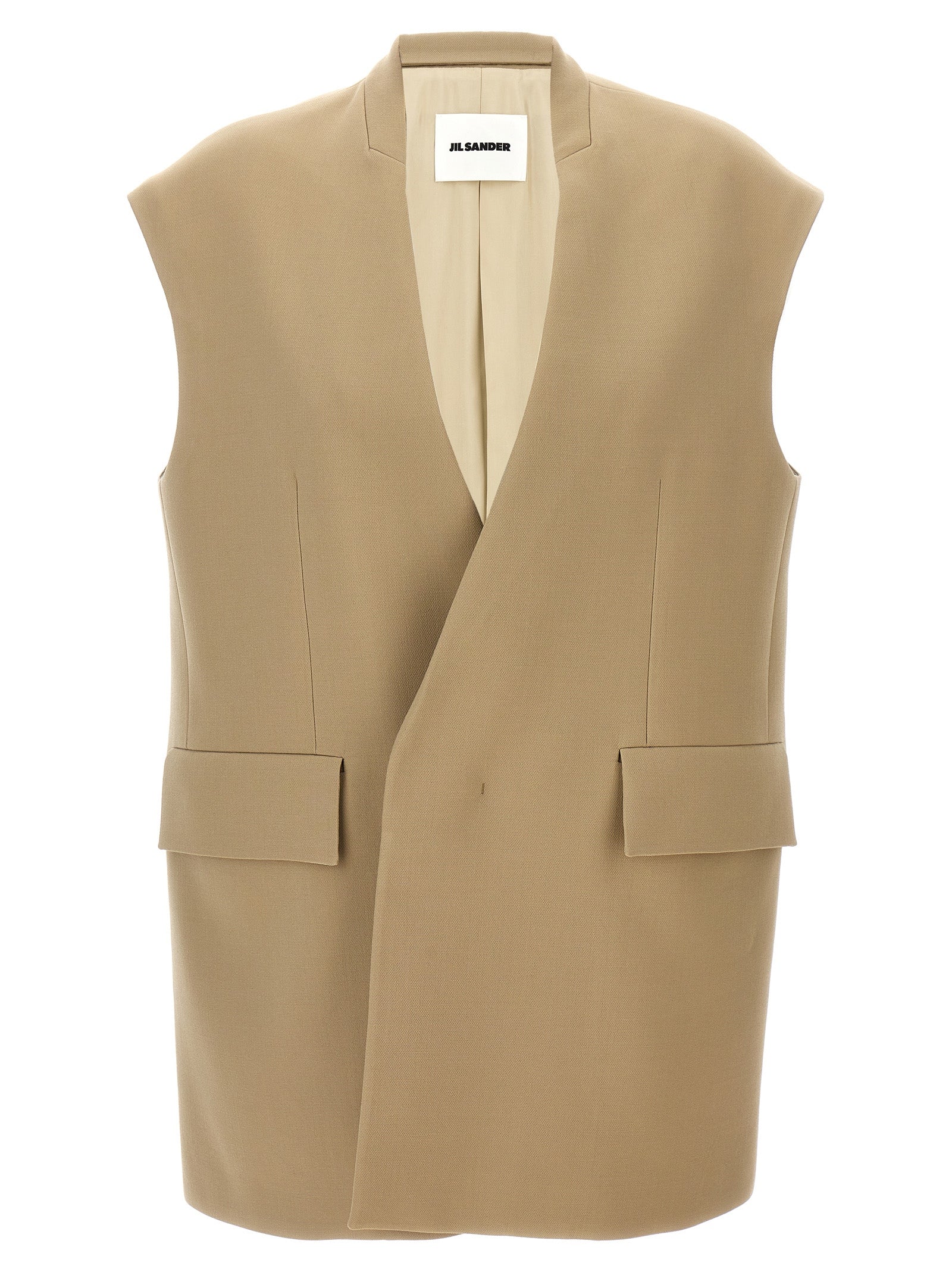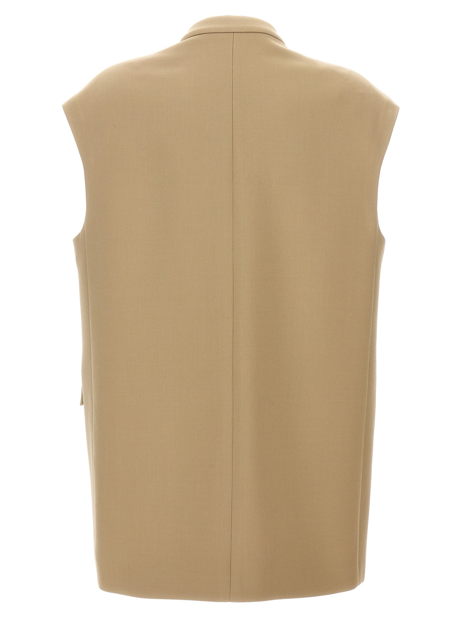 Oversized tailored cotton vest, double-breasted model with button closure, pockets, shoulder straps with removable padding.