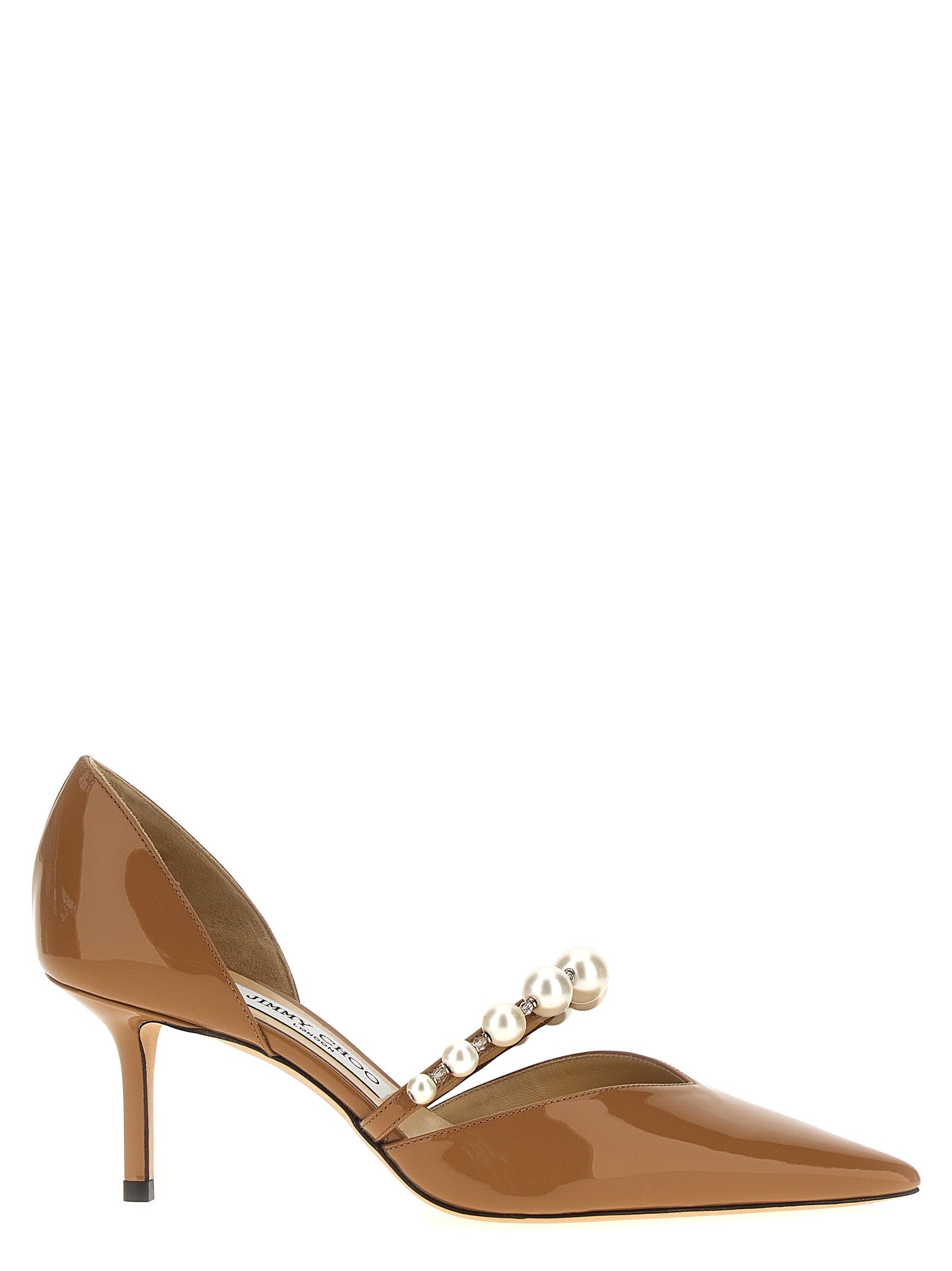 'Aurelie' patent leather pumps, pointed model with pearl application, stiletto heel.