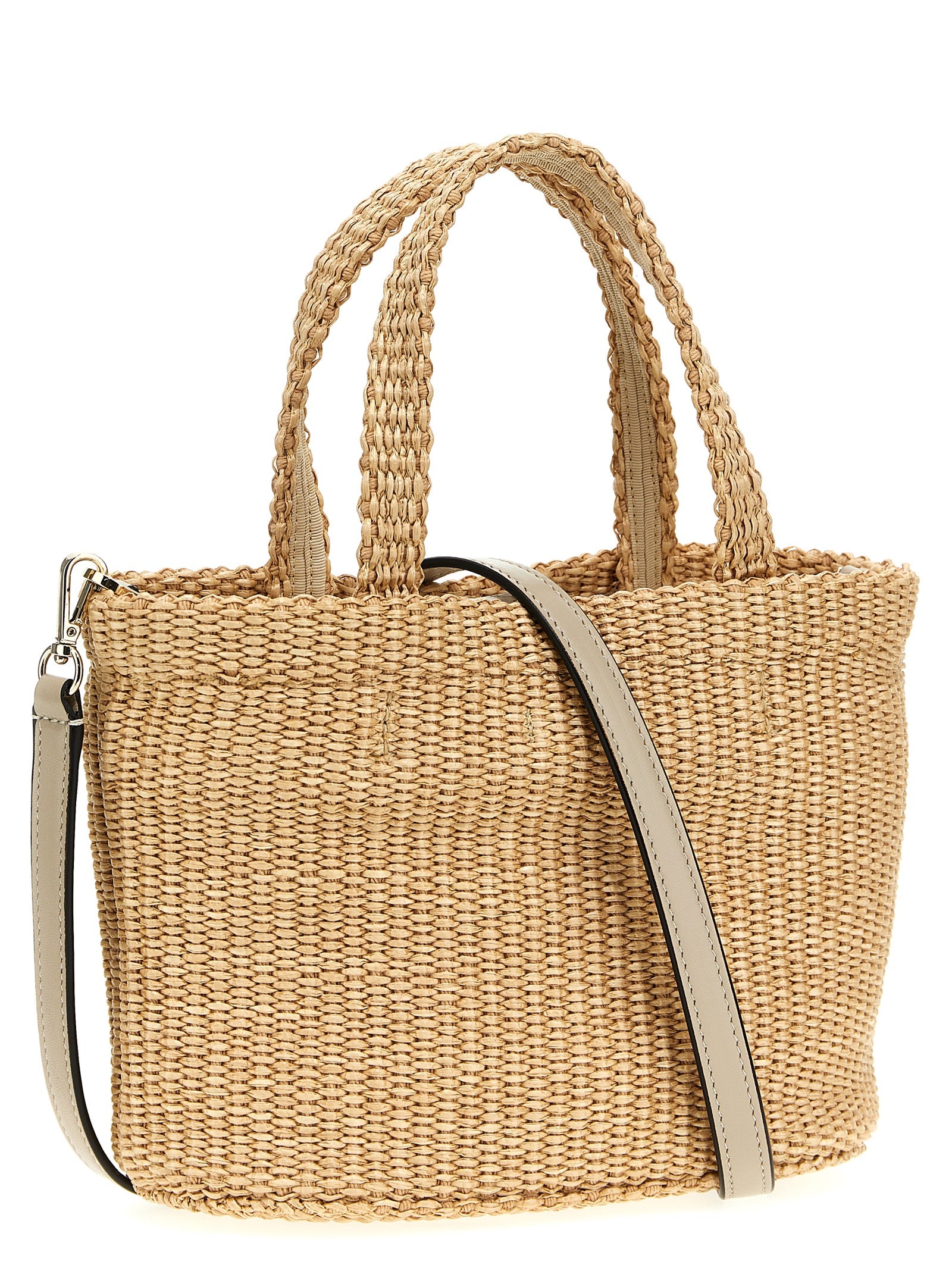 'Beach Tote E/W Mini' raffia handbag with front logo embroidery, double handle, removable leather shoulder strap.