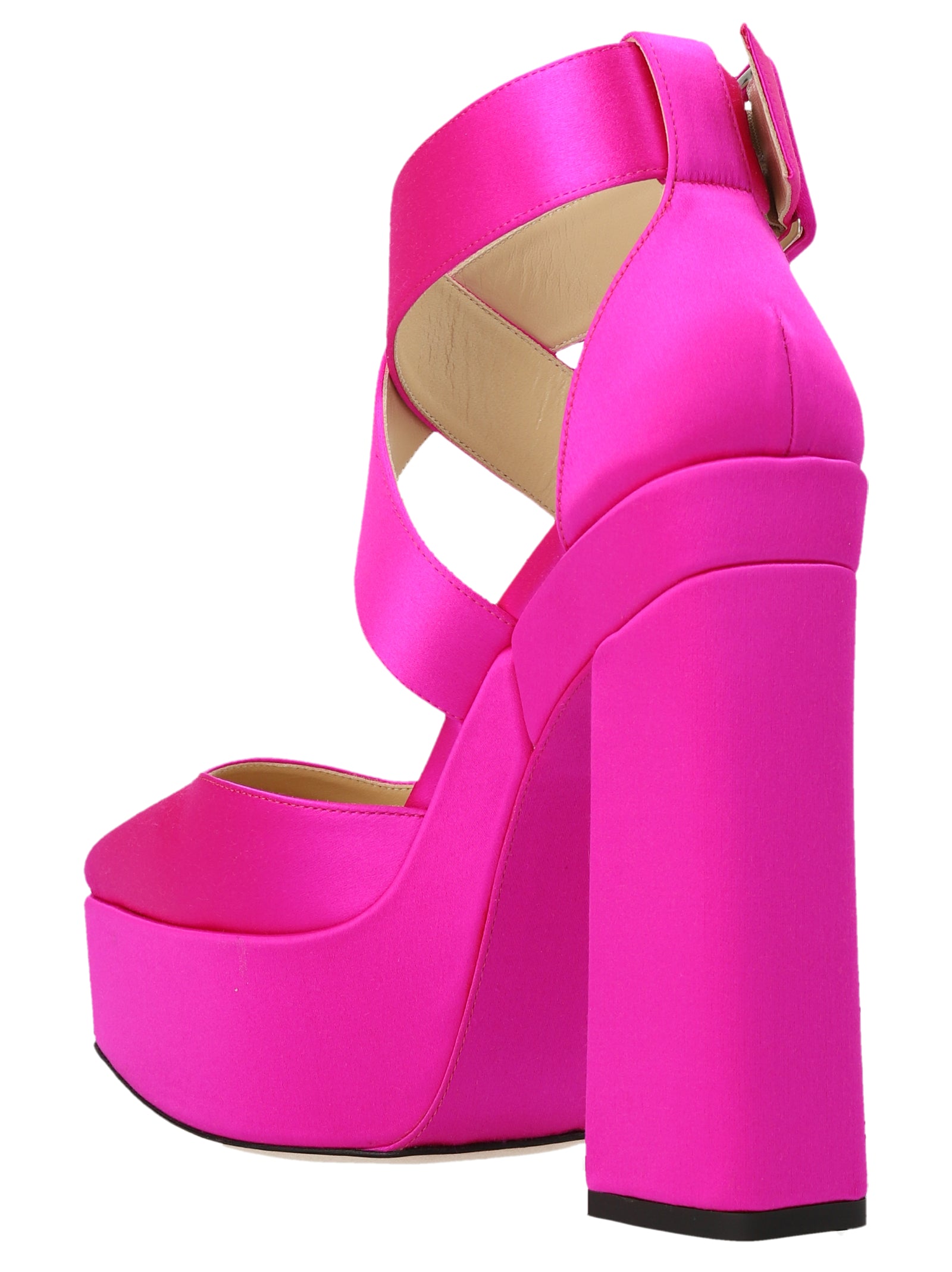 Gian' satin pumps with plateau, ankle strap and a squared toe.