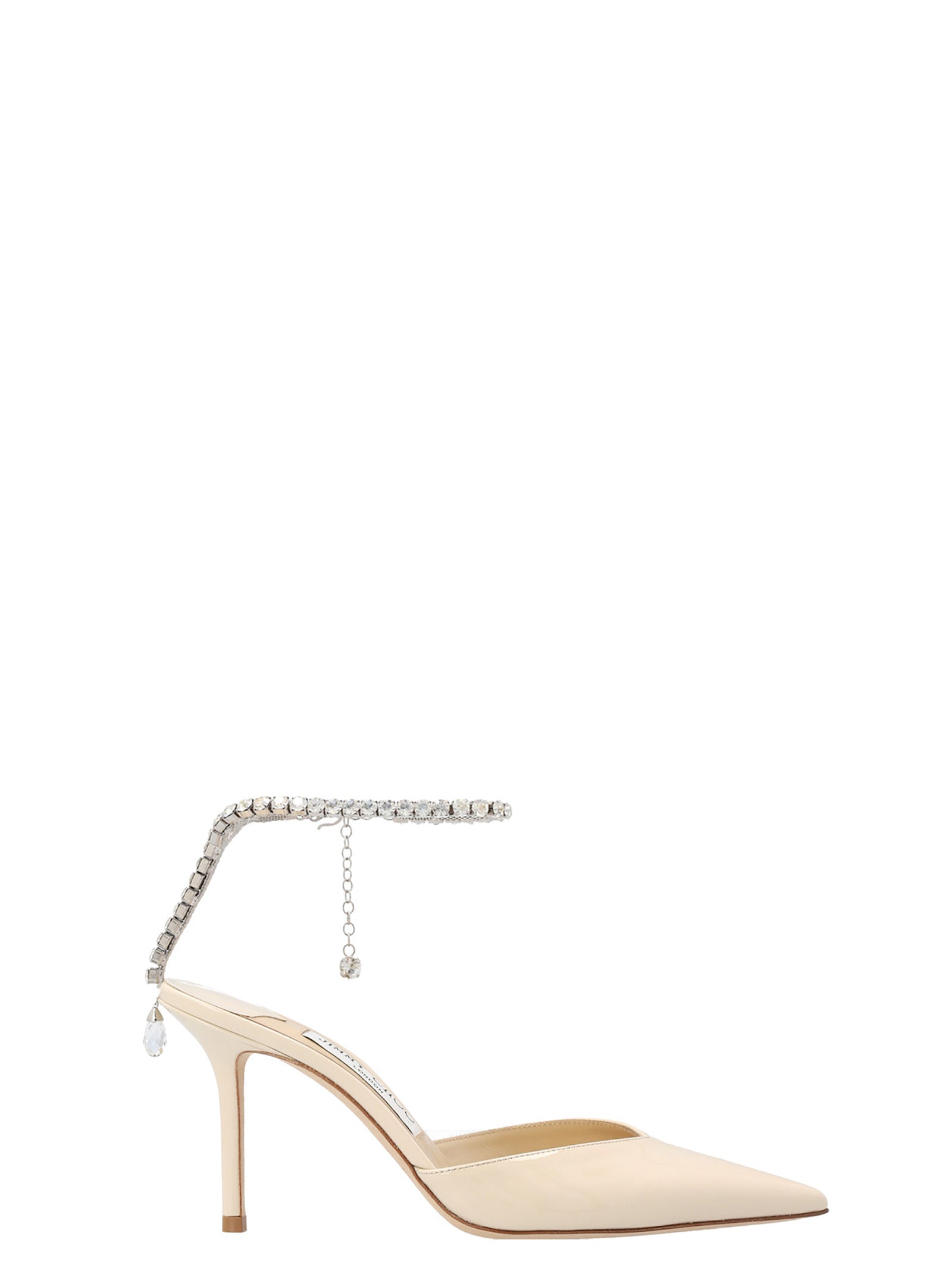 'Saeda' pumps in patent leather with a pointed toe, an ankle strap with crystal appliqués.