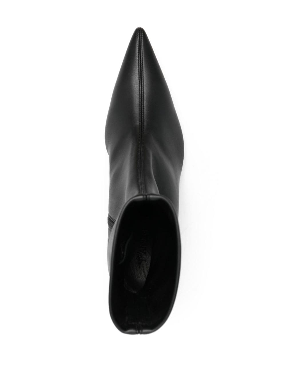 70mm sculpted-heel ankle boots from JW Anderson featuring black, gold-tone, calf leather, smooth grain, sock-style ankle, pointed toe, short side zip fastening and mid sculpted heel.