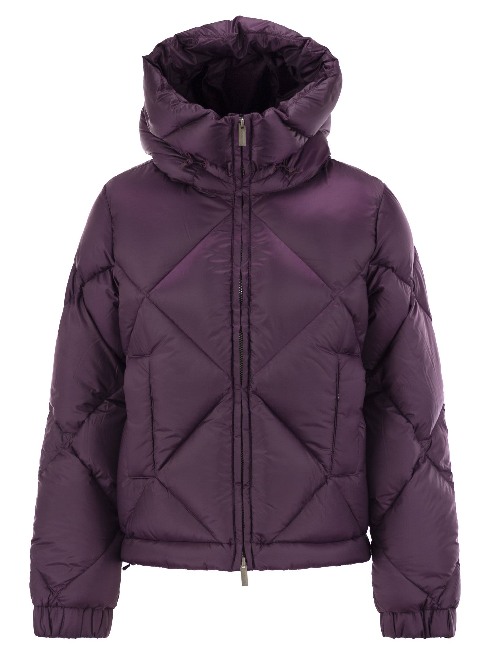 Ninev is a women's short jacket ideal for late winter, with a soft and contemporary look, with a quilted but essential design thanks to the absence of logos on the front. This jacket, which has a regular fit, is characterized by the contrast between the high degree of warmth, given by the Molina down padding, and the extremely light and fluffy appearance given by the soft nylon exterior with a silky feel. The model has a wrap-around and adjustable hood, 2 side pockets, adjustable waist with drawstring, elastic cuffs and the tape detail - K-Way on the cuff. - Silky nylon fabric - Molina down padding - Diamond quilting - High degree of heat - Adjustable hood - Zip closure - Elastic cuffs - 2 pockets with snap buttons - Adjustable waist - Regular fitting - Logo on the bottom of the sleeves DESIGNER ID: K7132DW AR5