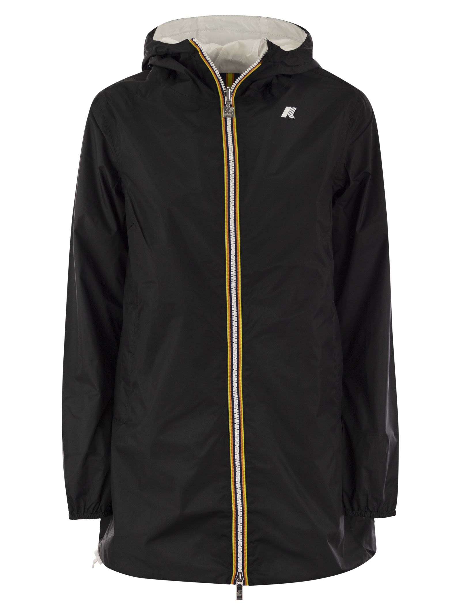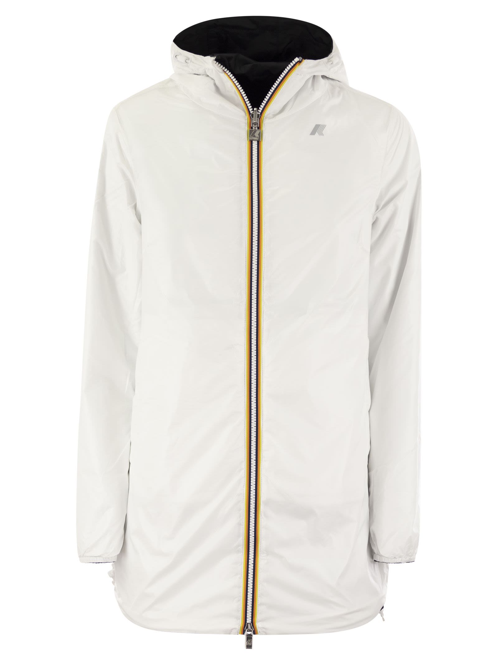 Sophie is a mid-length women's jacket with a reversible design, made of recycled material with one side in coated nylon and one side in smooth nylon in a contrasting colour. The model is designed with the utmost attention to detail: the seams are heat-taped, while the edges are finished with elastic inserts to provide a snug and comfortable fit. - Waterproof, windproof, breathable nylon outer fabric - Shiny, water-repellent nylon inner fabric - Reversible - Taped seams - Adjustable hood with elastic cord and cord stopper - Adjustable hem with elastic cord and cord stopper - Zip closure - Wrists with elastic - 2 zipped pockets - 2 snap button pockets - Regular fit - Logo applied in white silicone DESIGNER ID: K7123MW AL7