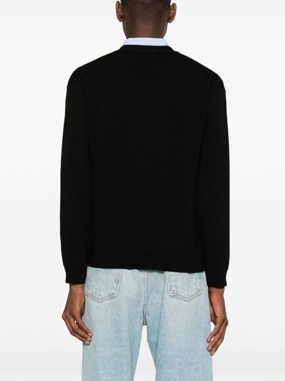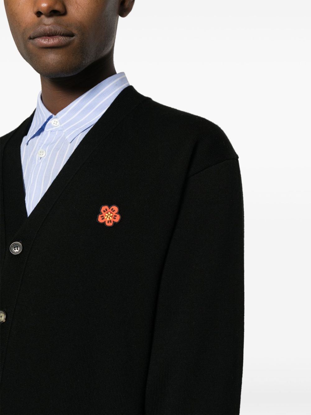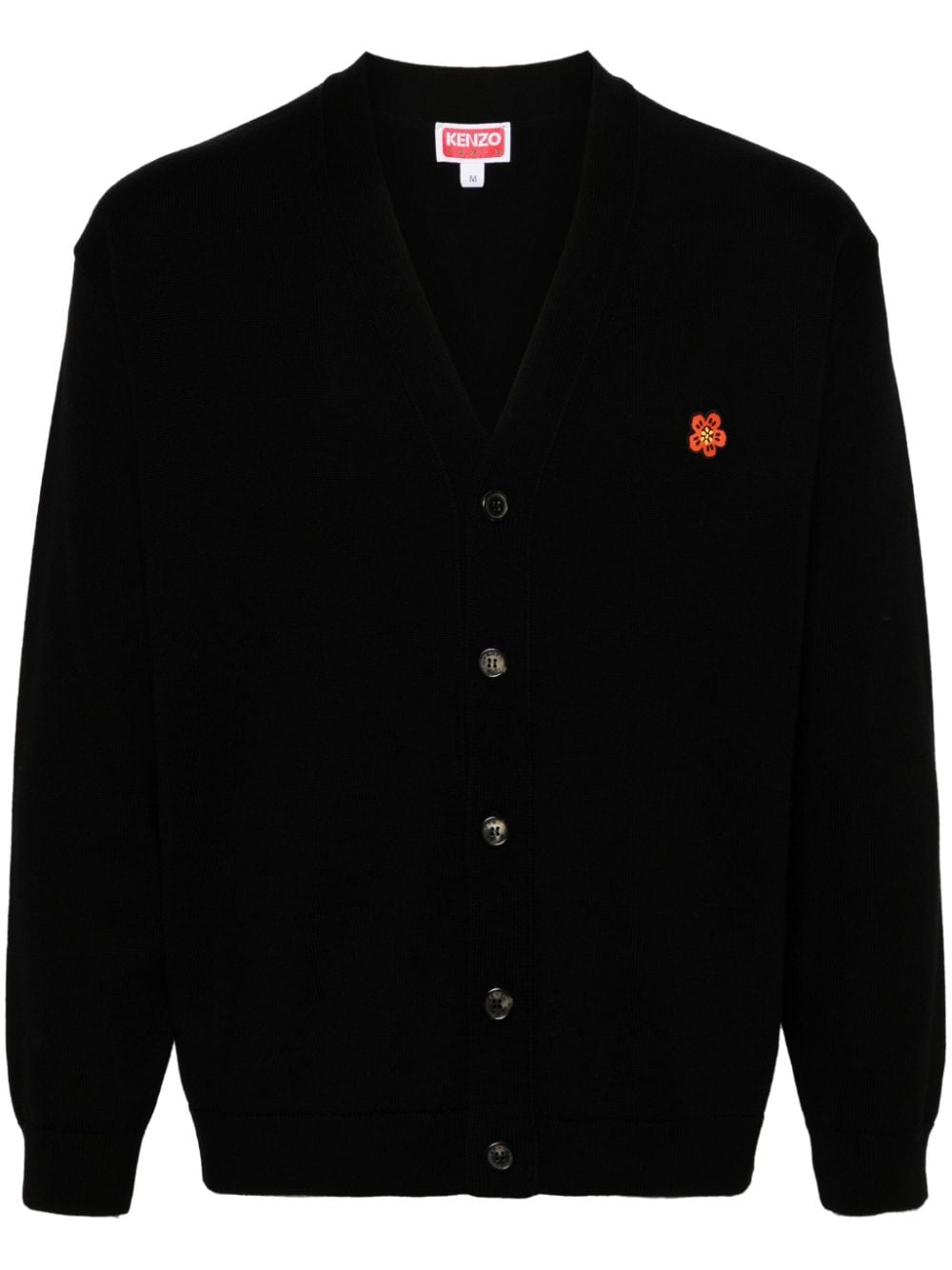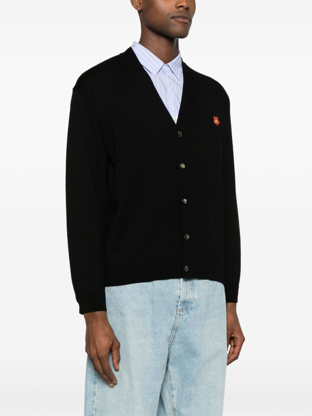 black wool signature Boke Flower motif V-neck front button fastening long sleeves ribbed cuffs and hem