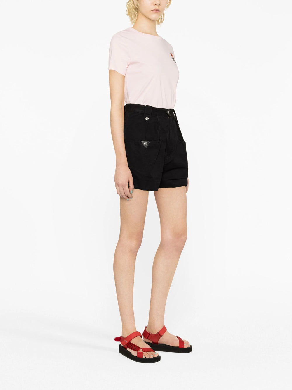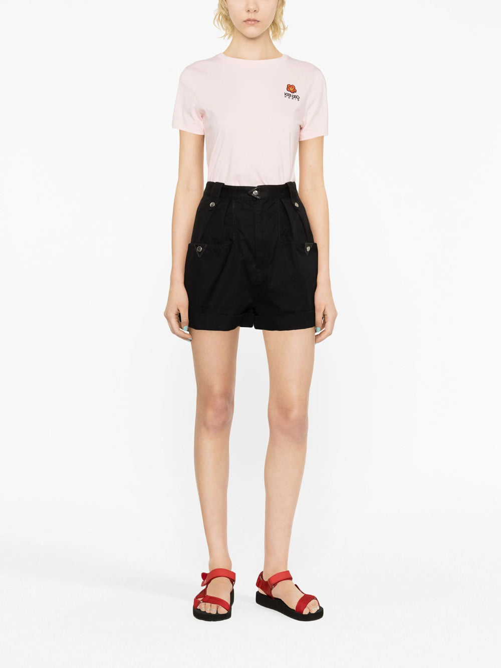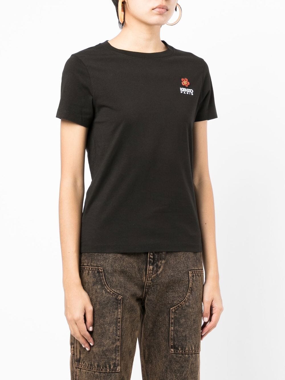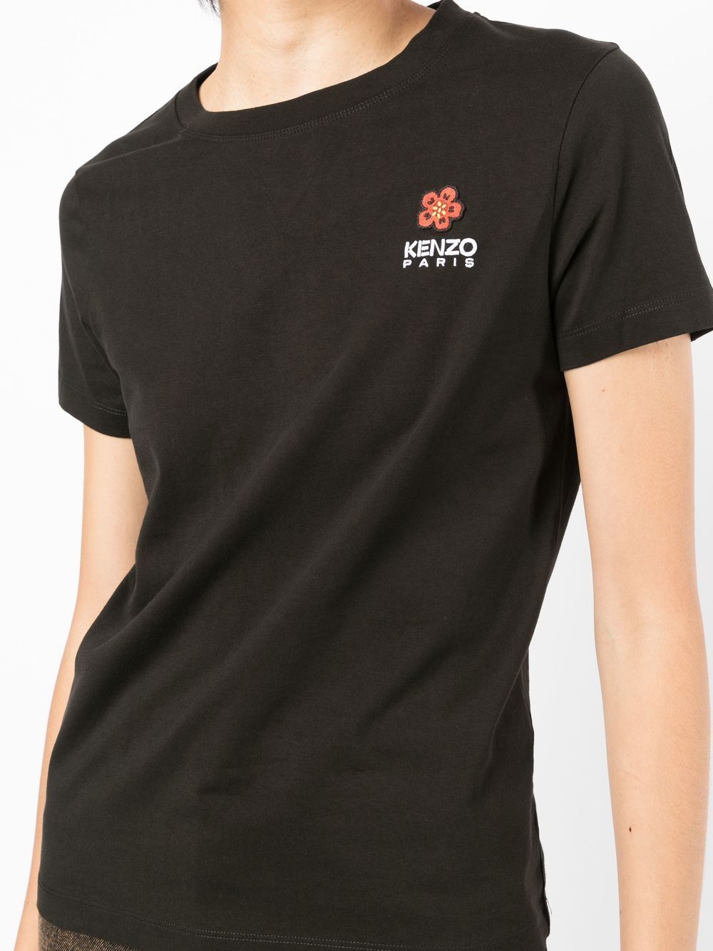 Jersey workmanship, embroidered logo on the chest, floral embroidery, round neckline, short sleeves and straight hem.