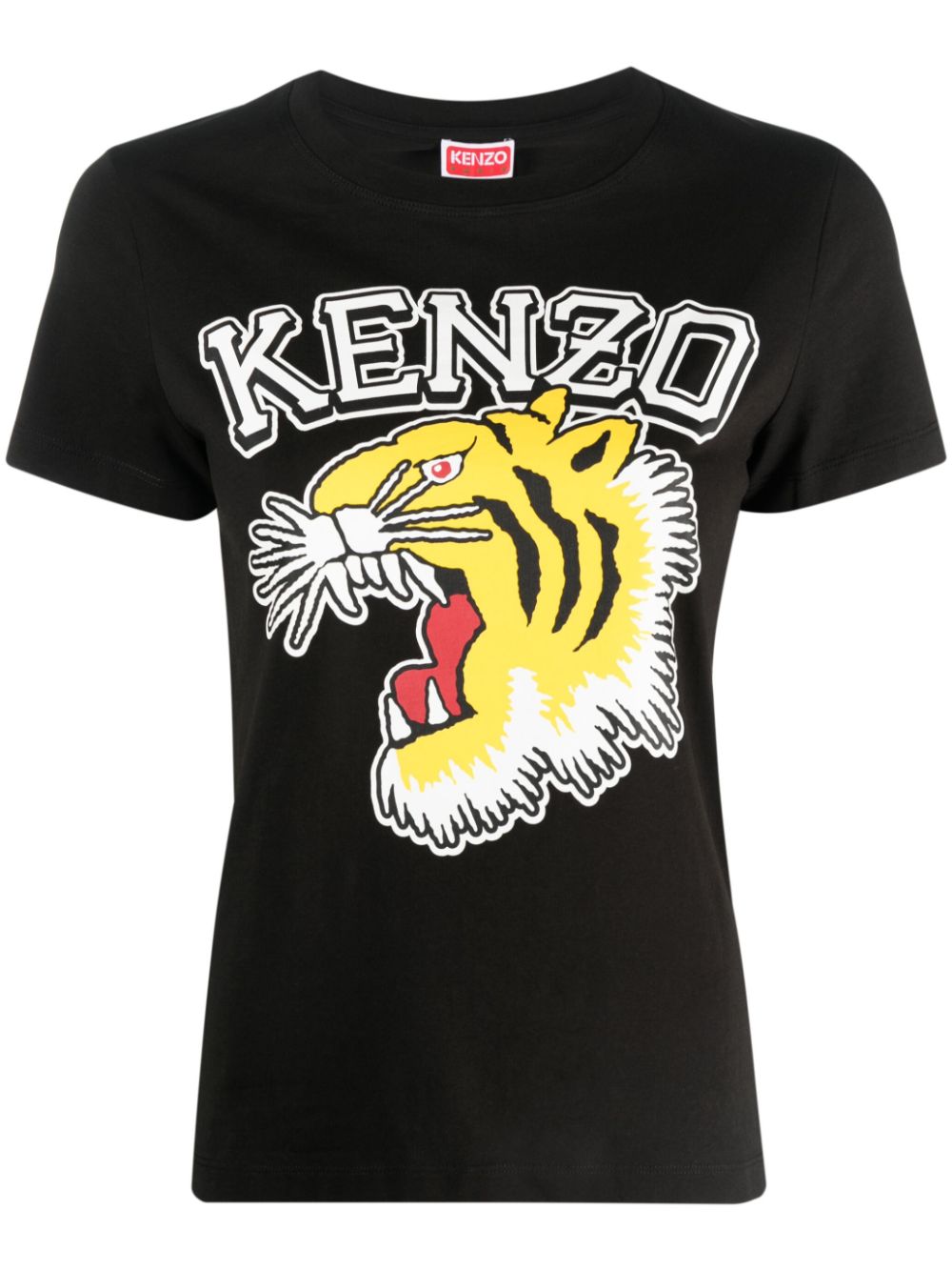 Tiger Varsity cotton T-shirt from KENZO featuring black/multicolour, cotton, logo print at the chest, tiger print, crew neck and short sleeves.