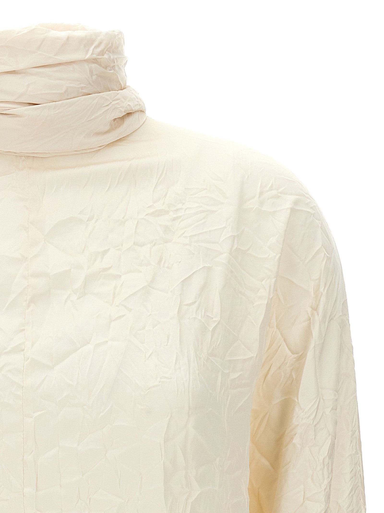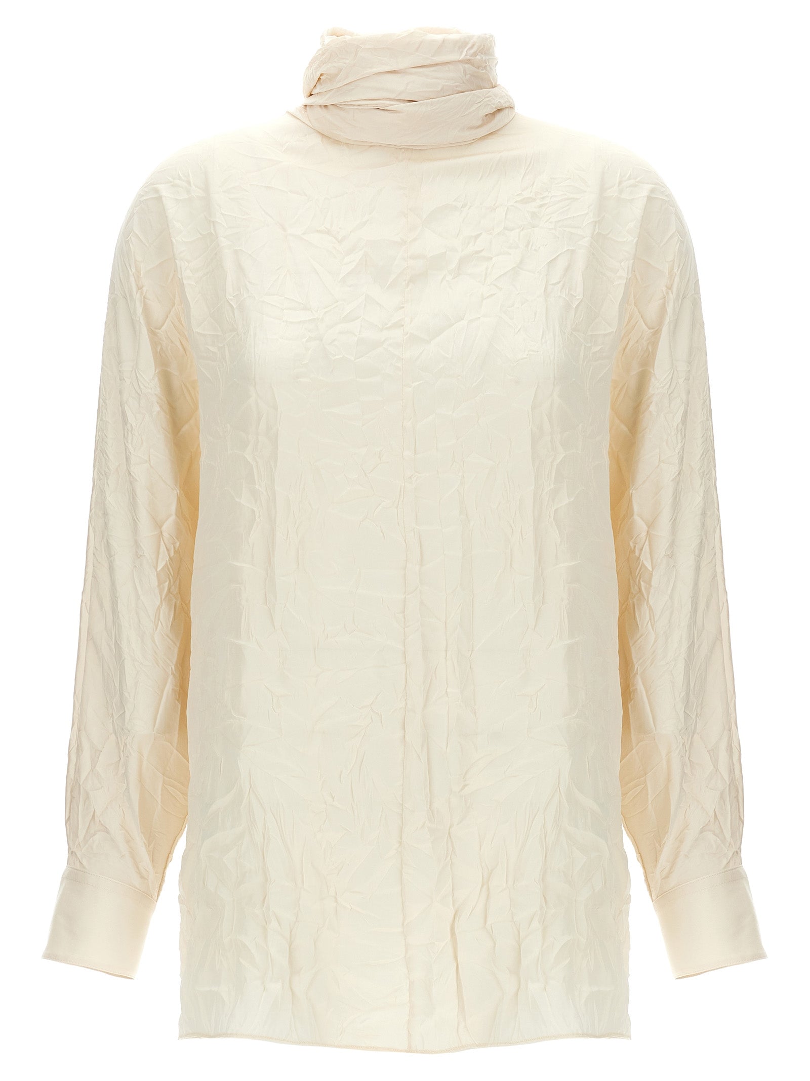 'Bex' blouse in wrinkled silk-effect fabric with long cuffed sleeves, sash at the neck, to wear with V-neck or V-neck.