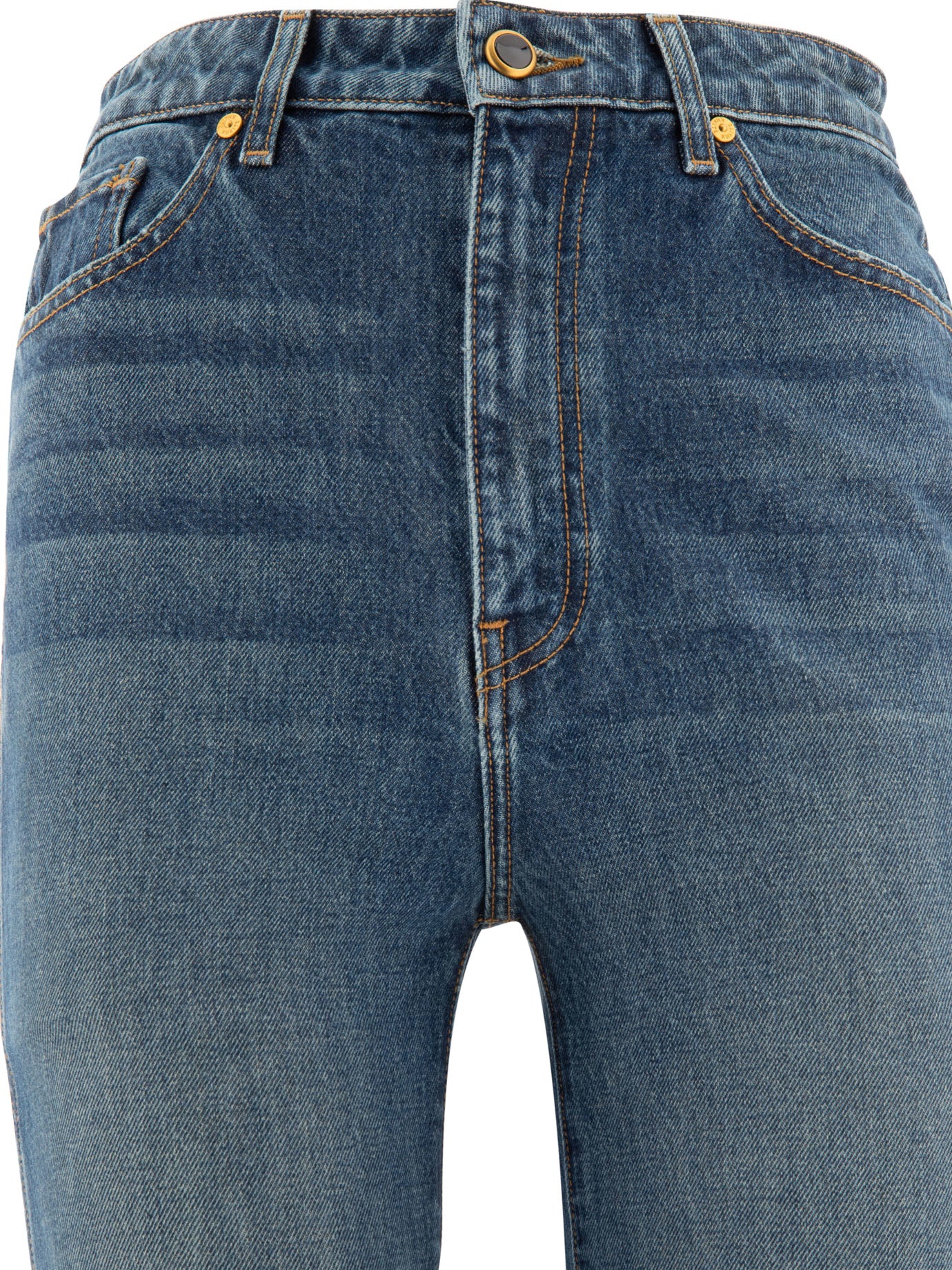 Discover Khaite's signature "Danielle" jeans, an essential for any woman who wants a sophisticated and flattering look. With a solid color and a regular fit, these jeans stand out for their ability to adapt to any situation, from casual to refined. The high waist and stovepipe silhouette complete a design that combines style and comfort.