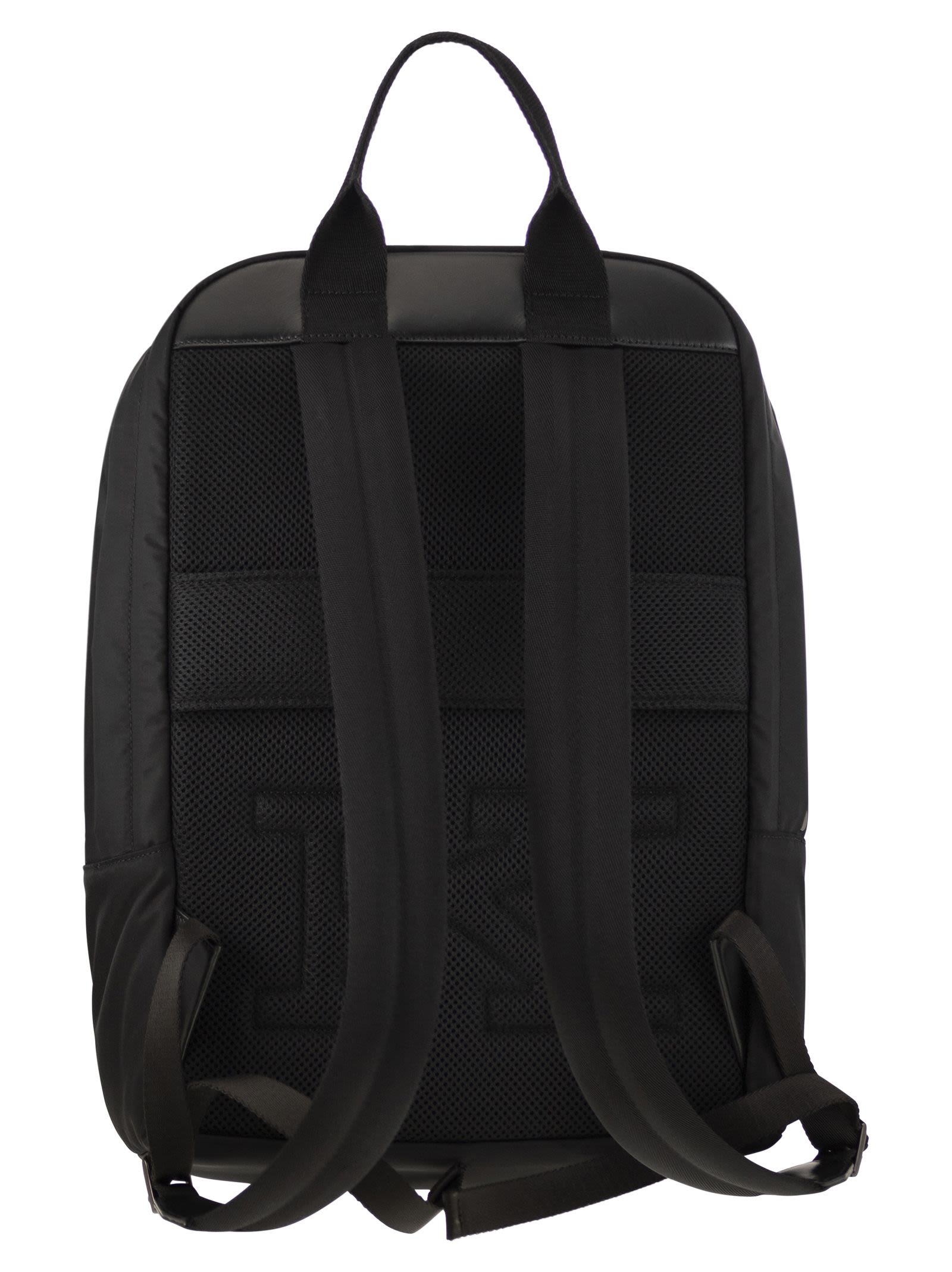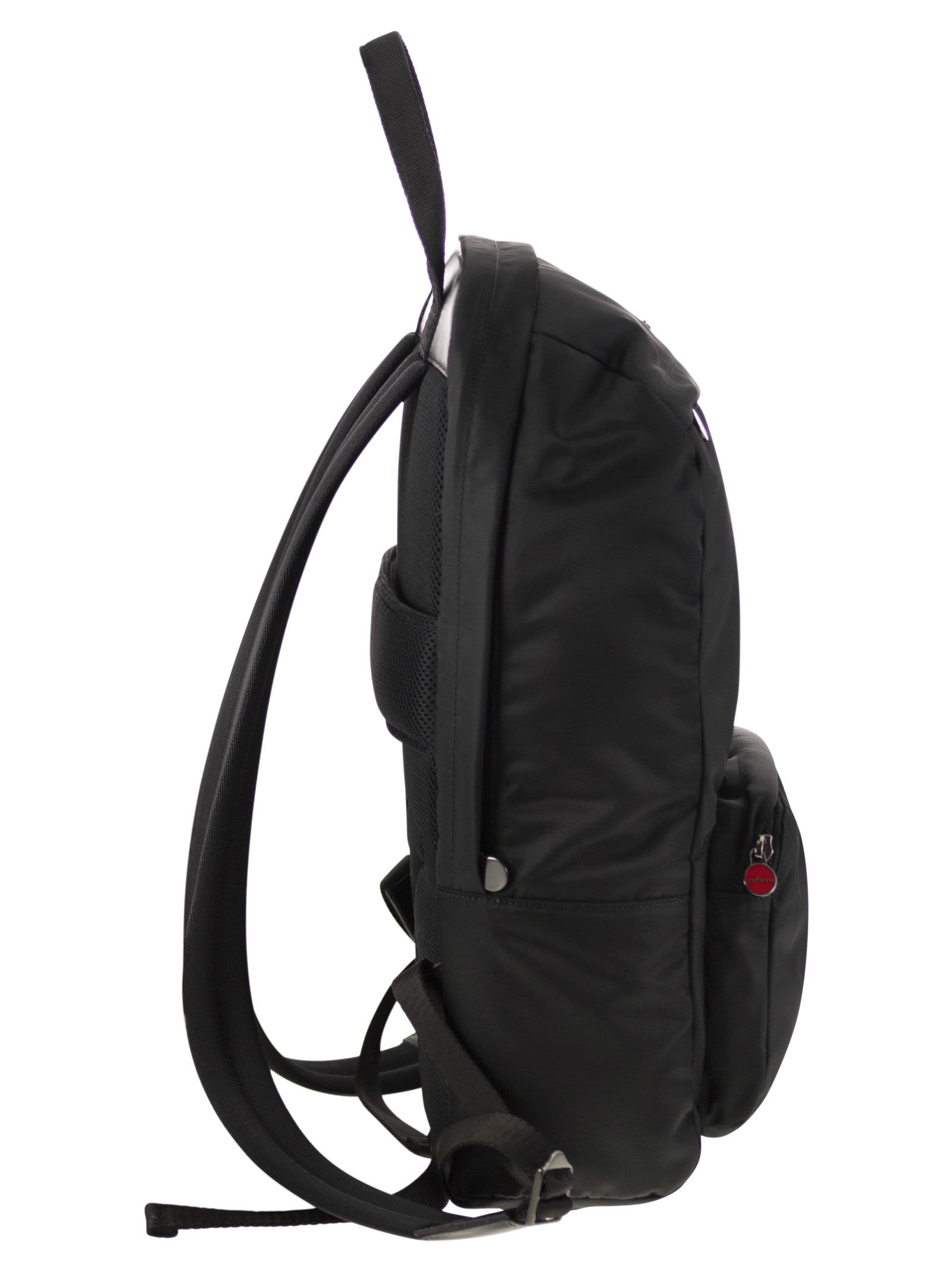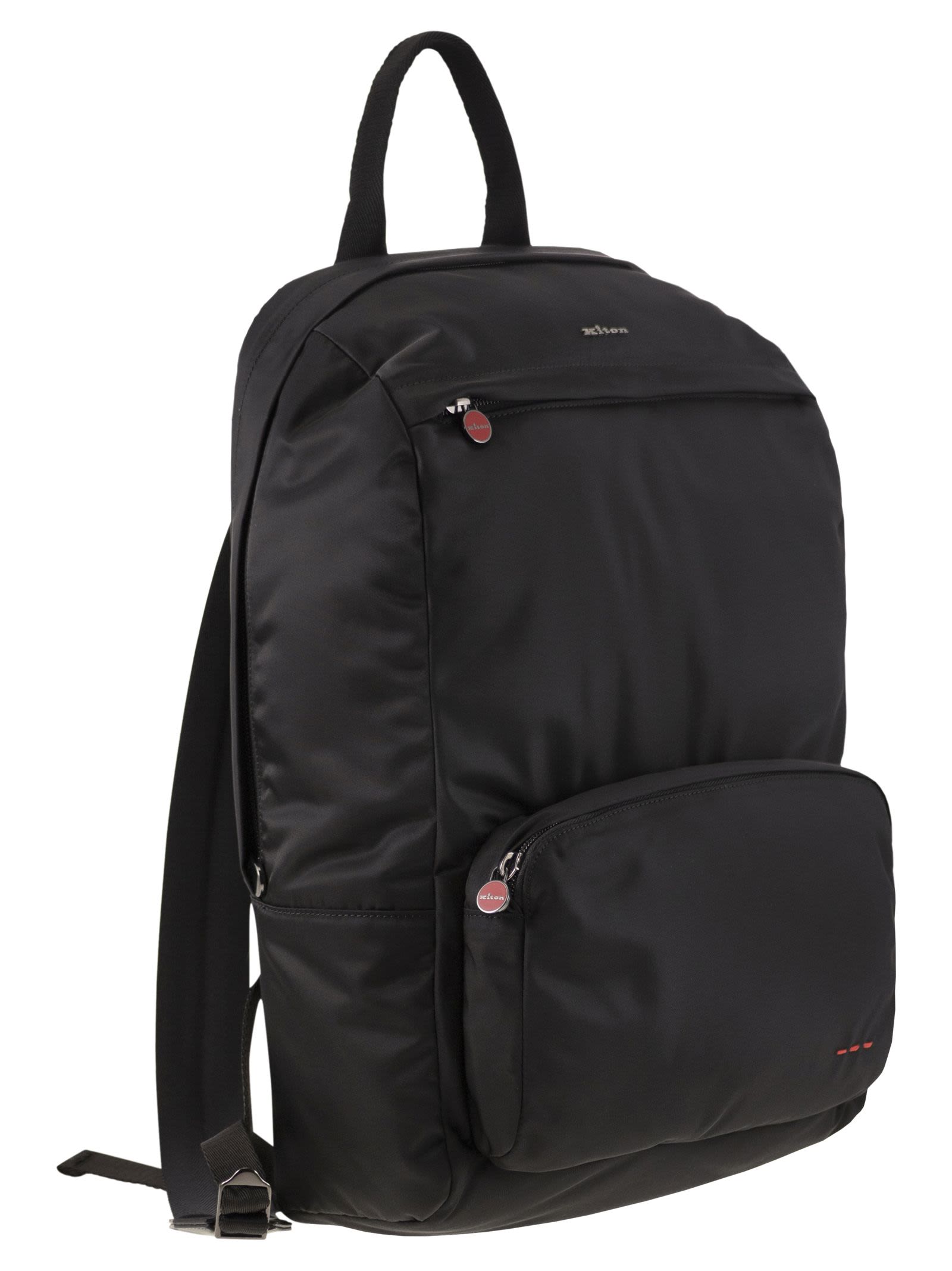 Perfect for urban life, this sporty backpack is made of high-quality nylon and embellished with refined leather inserts. The zip fastening, large front pocket and adjustable logoed shoulder straps offer an essential and minimalist design, ideal for the dynamic and cosmopolitan man. Thanks to the meticulous workmanship of Kiton's artisans, the backpack stands out for its extraordinary lightness and remarkable flexibility: it can be easily folded and stowed in a suitcase, reducing bulk to a minimum. - Interior: laptop pocket and 3 open pockets - Adjustable shoulder straps - 2 front pockets - Zip closure DESIGNER ID: UBA0056N0122101007