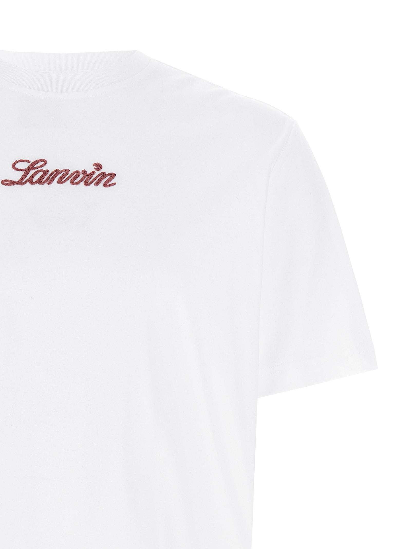Cotton, crewneck t-shirt with embroidered logo detail on the front, and short sleeves.