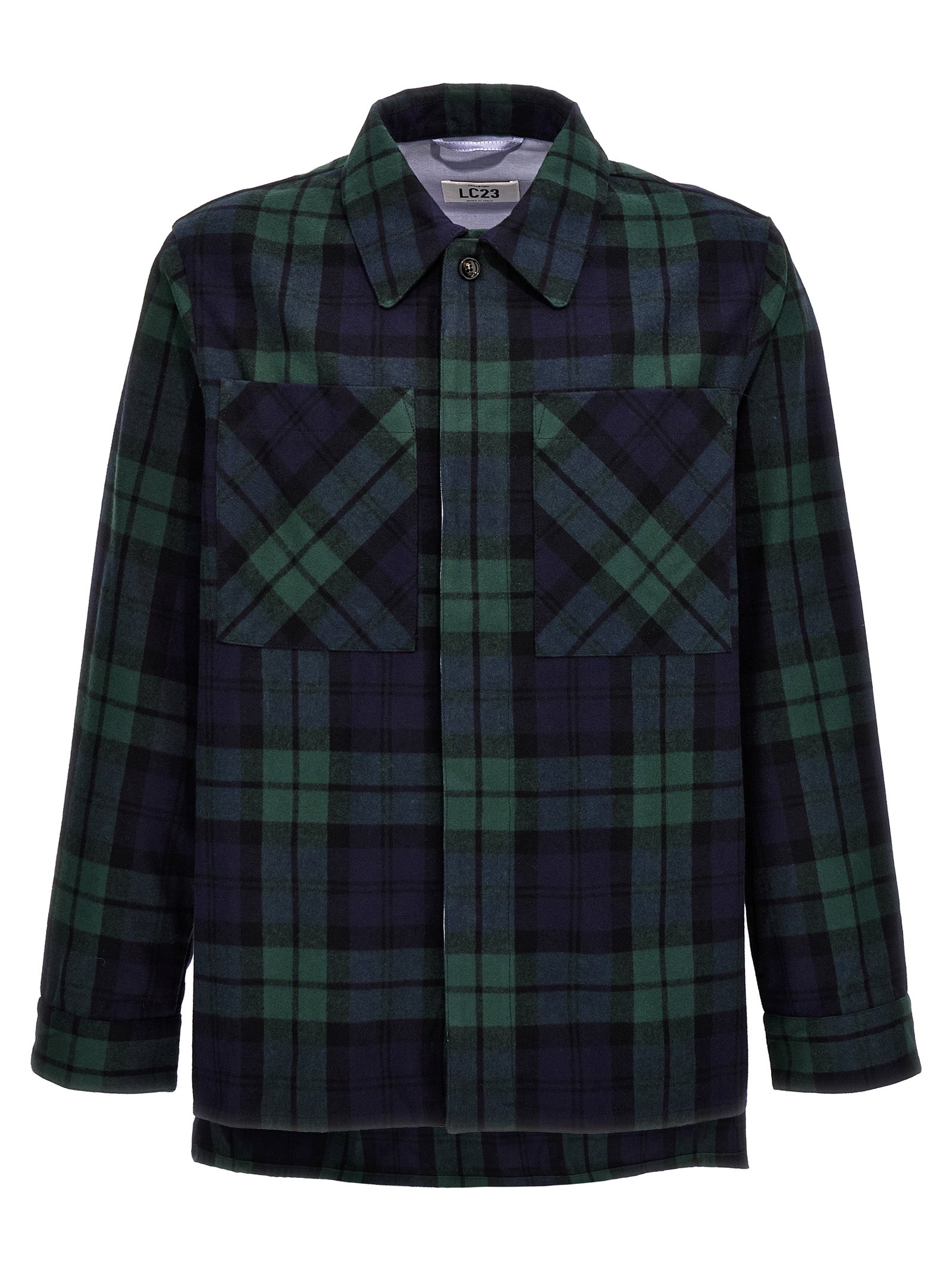 'Blackwatch' all-over check fustian overshirt with button closure and chest pockets.