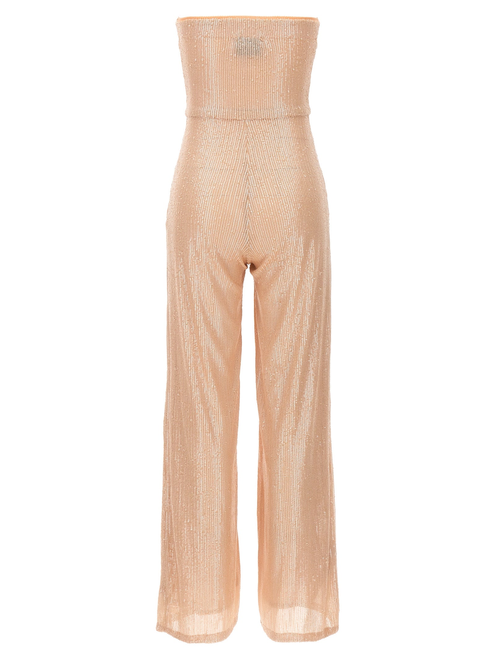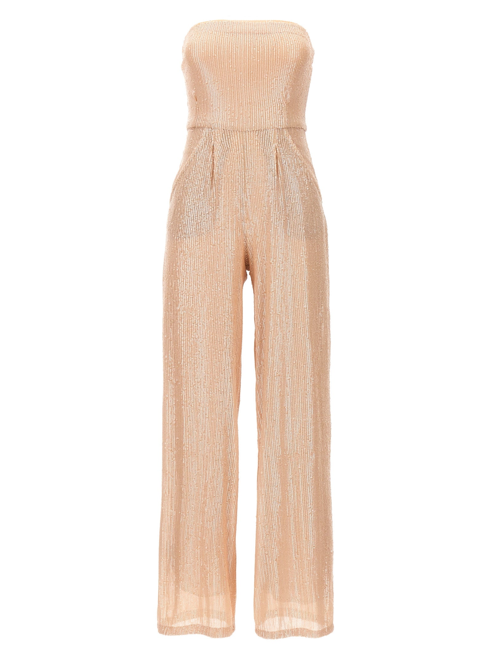 'Priscilla' strapless jumpsuit in stretch fabric with all-over sequins, long leg.