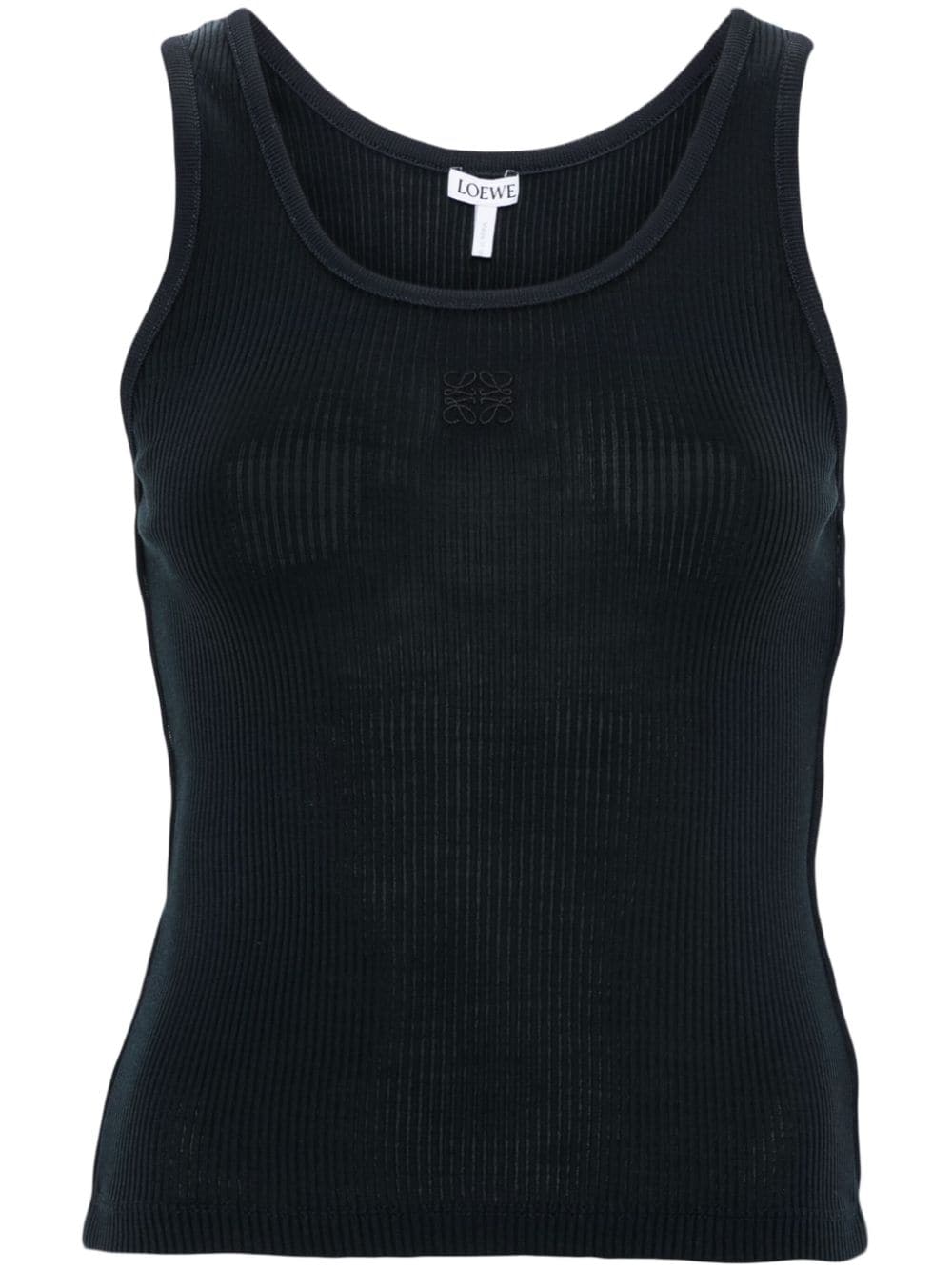 navy blue silk fine ribbed signature embroidered Anagram motif scoop neck sleeveless straight hem