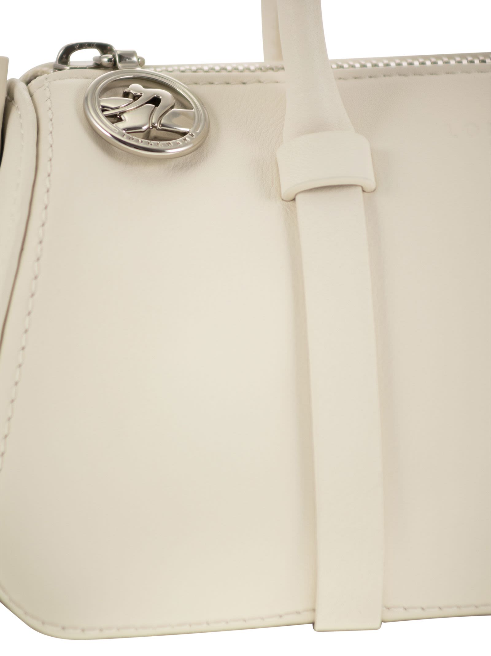 Daylong reinterprets the iconic bowling bag with details that evoke the equestrian world: center straps and an XXL jockey medal. Timeless and refined, its strength lies in the rounded lines and sinuous curves that emphasize its functional design. This minimalist line is an expression of the casual-chic style that matches the ideals of those who love to travel and enjoy city living. Day-Long demonstrates Longchamp's excellent craftsmanship through refined, supple calfskin with a soft, delicate touch. - The softness of the calfskin leather offers a smooth, soft-touch finish - Zipper closure - Removable and adjustable shoulder strap - 1 credit card slot DESIGNER ID: 10270 HFK 037