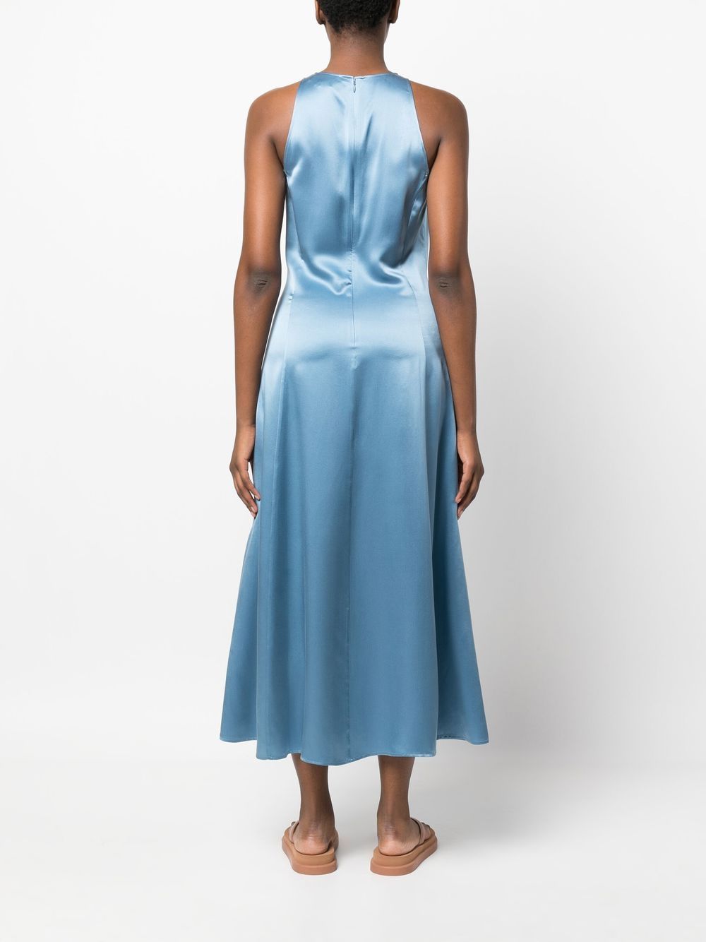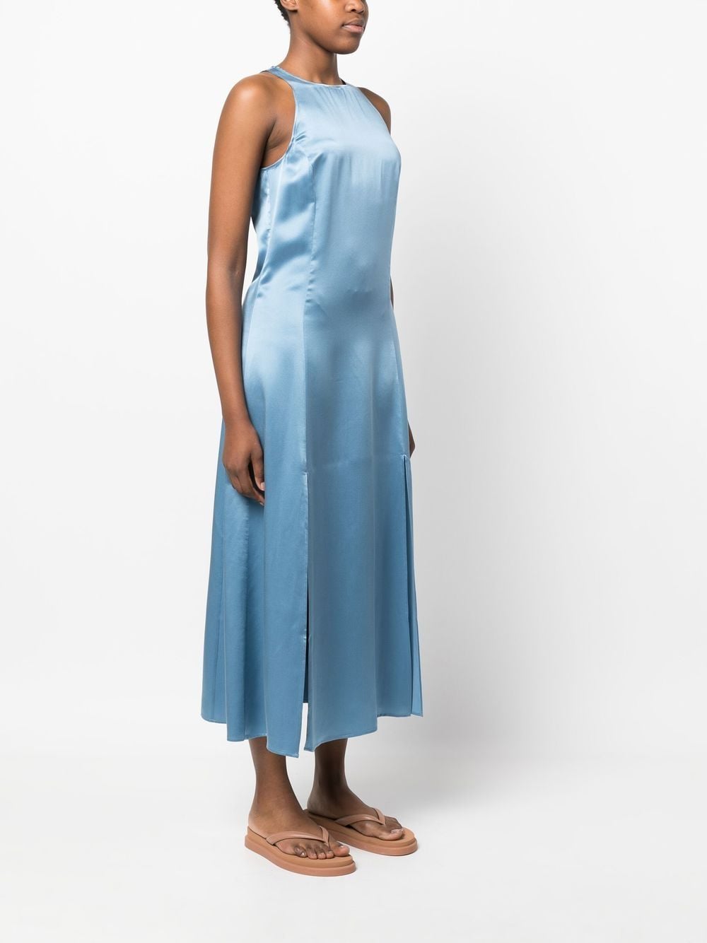 Satin-finish sleeveless midi dress from Loulou Studio featuring silk, satin finish, round neck, concealed rear zip fastening, sleeveless and straight hem. MINA