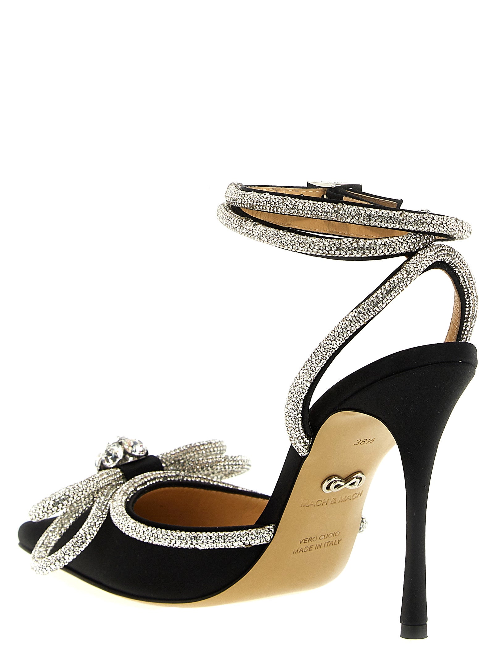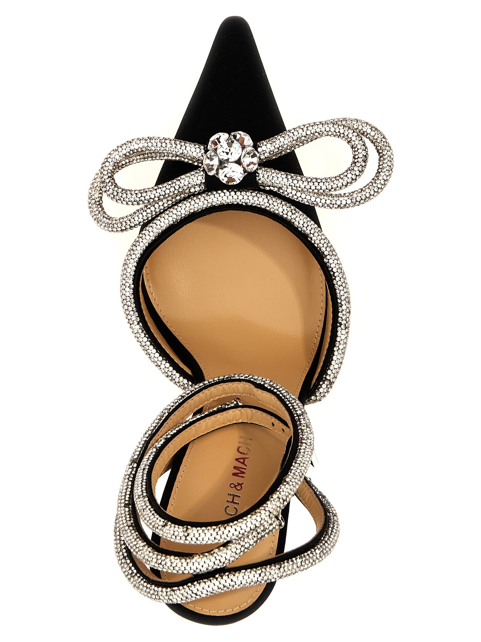 'Double Bow' satin pumps, adjustable jewel ankle strap, front jewel bow application, pointed model with high heel.