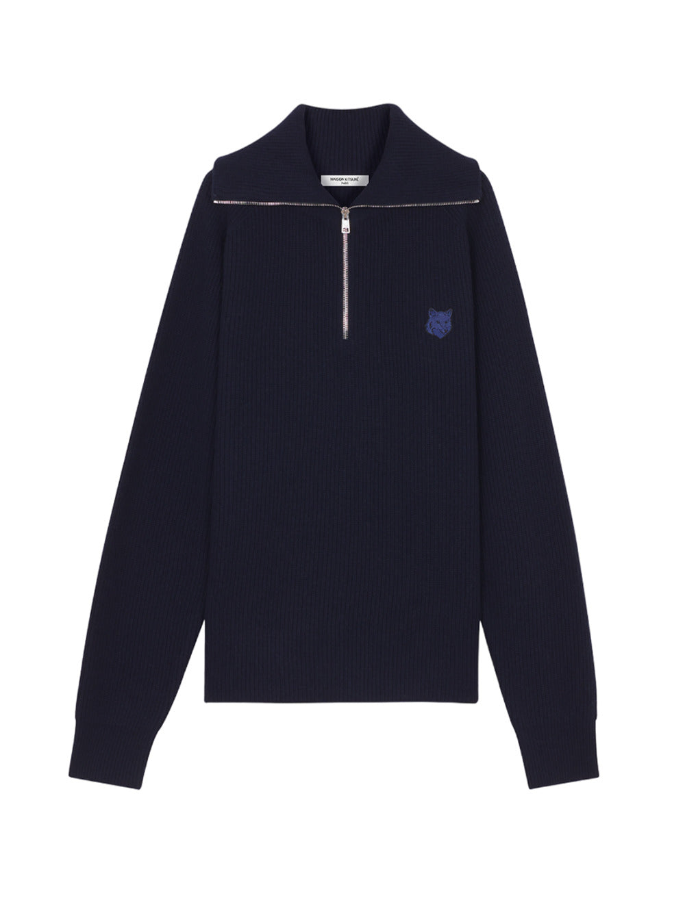 Maison Kitsune` Bold Fox Head Patch Half Zip Ribbed Jumper