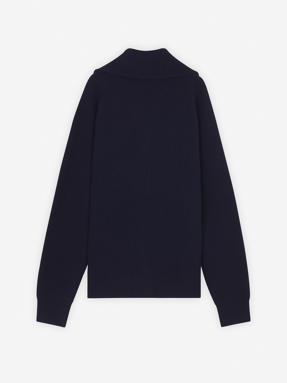 •Simple ribbed merino wool blend sweater with zip