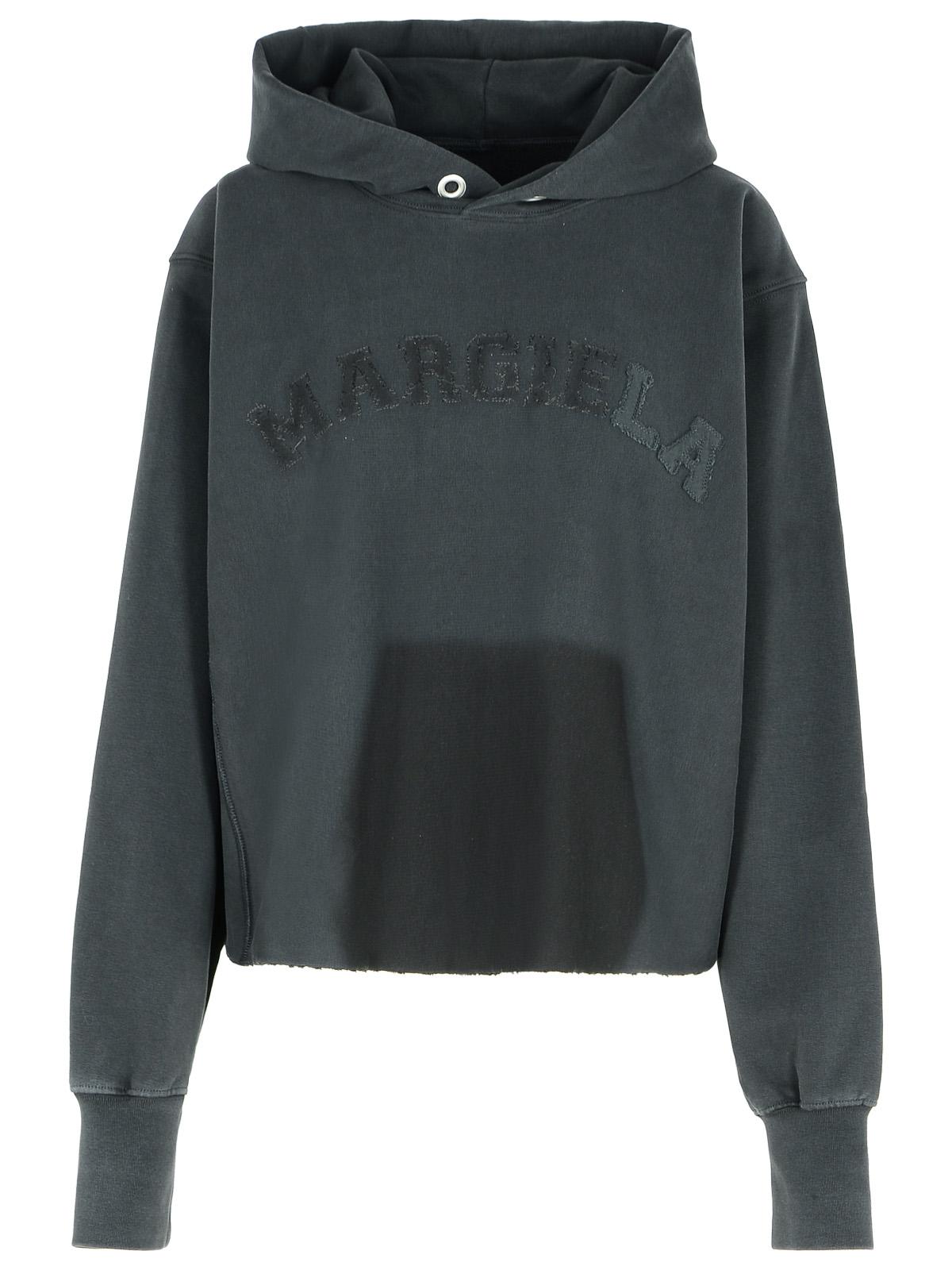 Hood with metal eyelets, oversized and cropped fit, tone-on-tone embroidered logo, ribbed cuffs