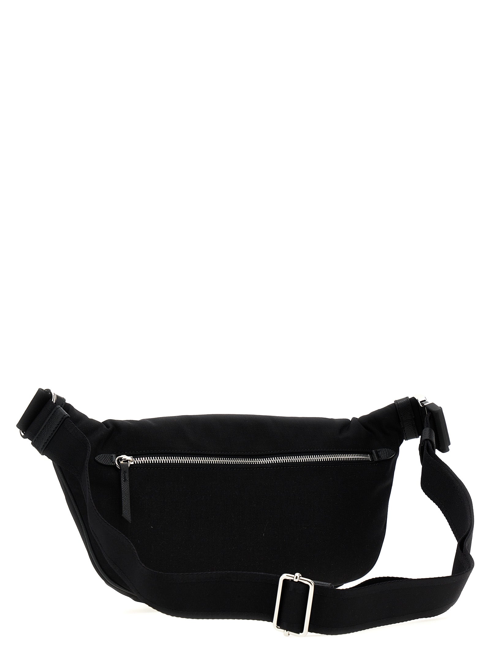 'Glam Slam Belt Bag' nylon and leather waist bag, zip closure, front logo label, adjustable shoulder strap.