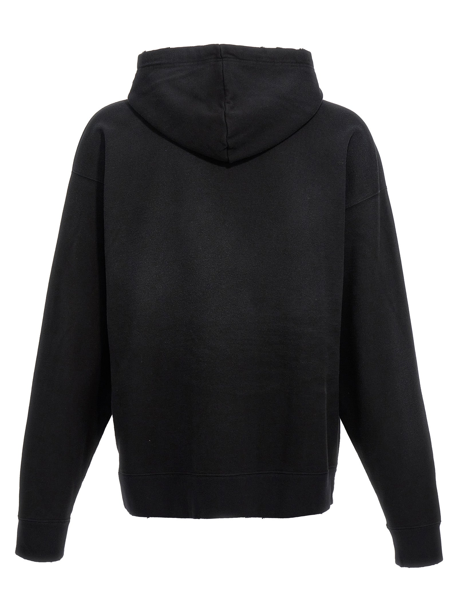 Cotton hoodie with distressed details, front print, kangaroo pocket, long cuffed sleeves.