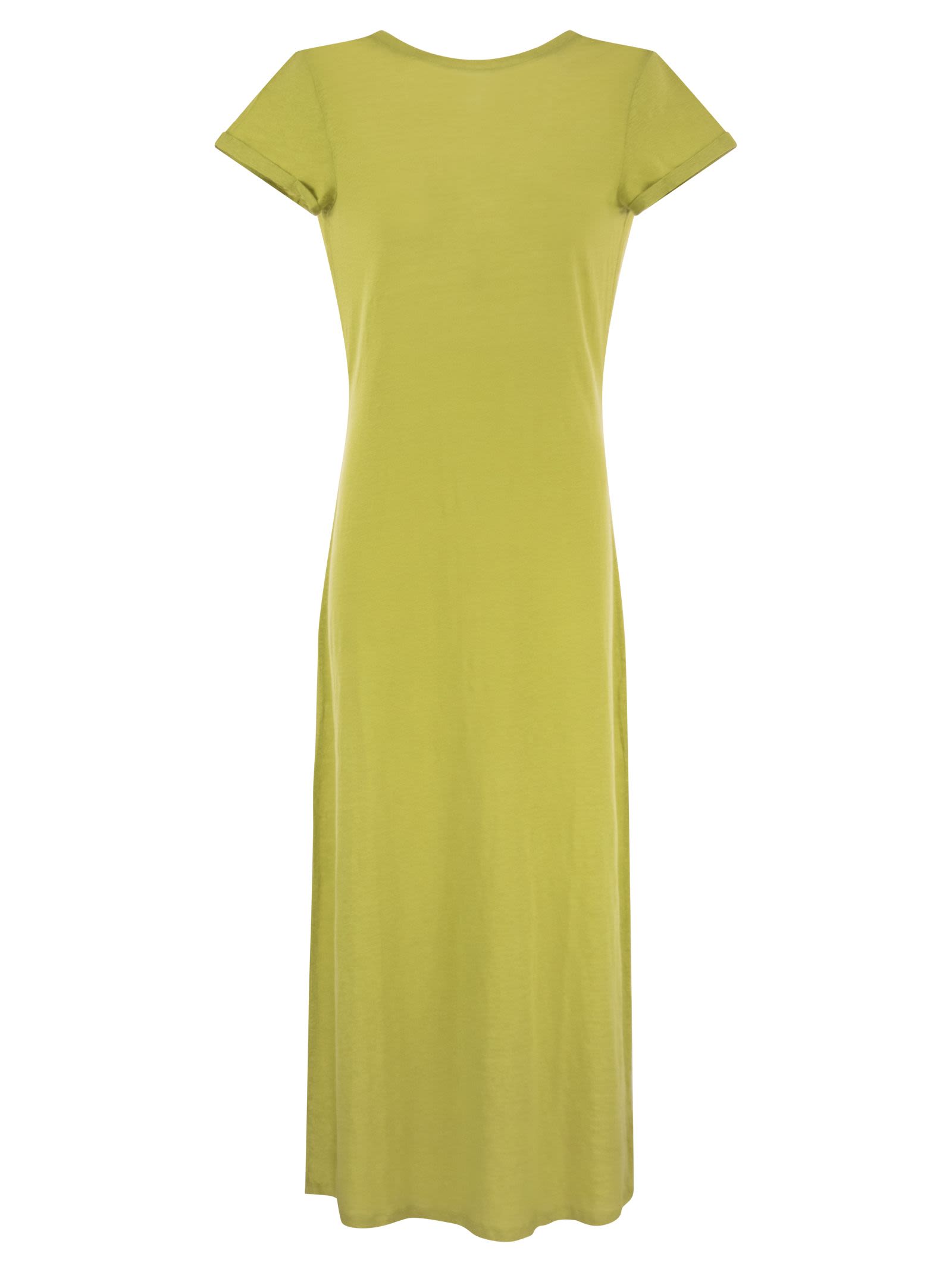 Dress with boat neckline, short sleeves and deep V-neck at the back. Regular fit: a versatile and feminine garment with simple and elegant shapes. The linen and elastane composition makes this dress precious and comfortable. - Short sleeves - Bateau neckline - V-neck on the back - Regular fit DESIGNER ID: E23M011 FRO203 611