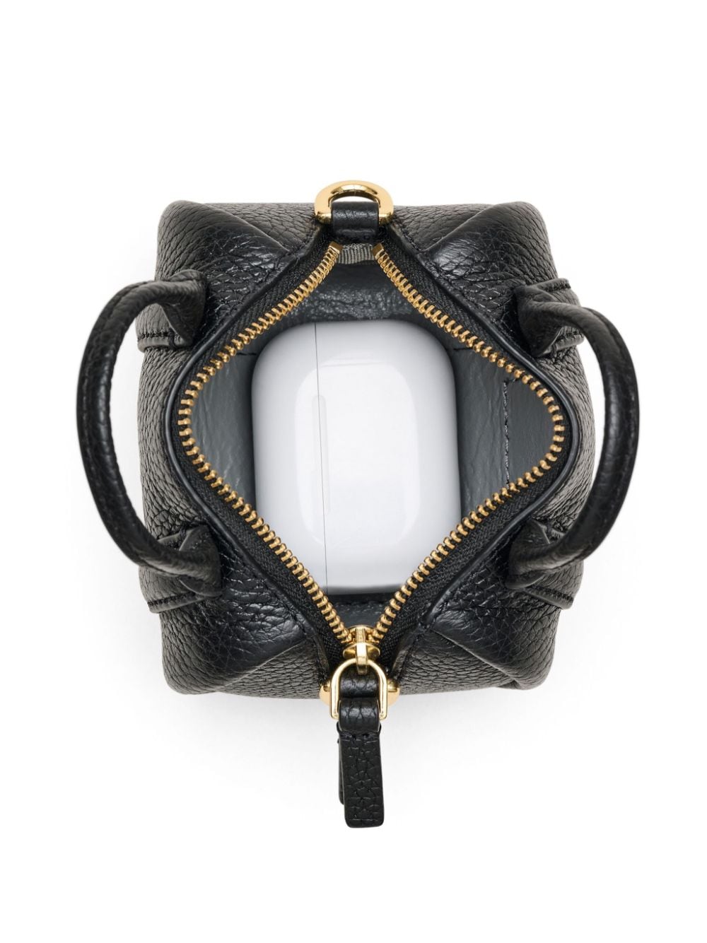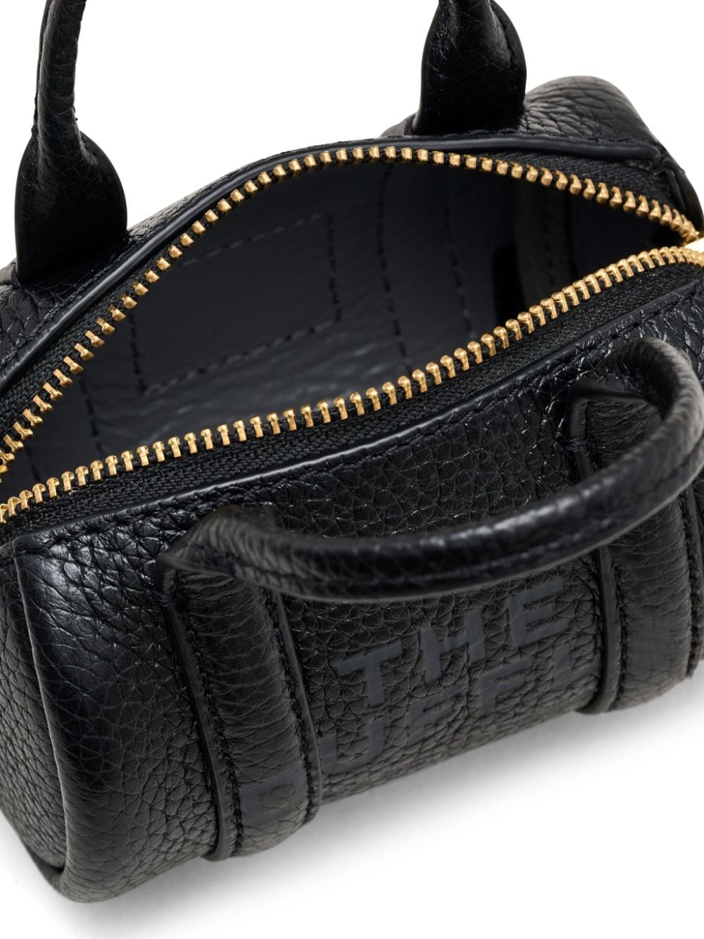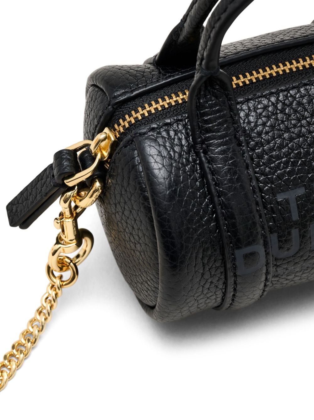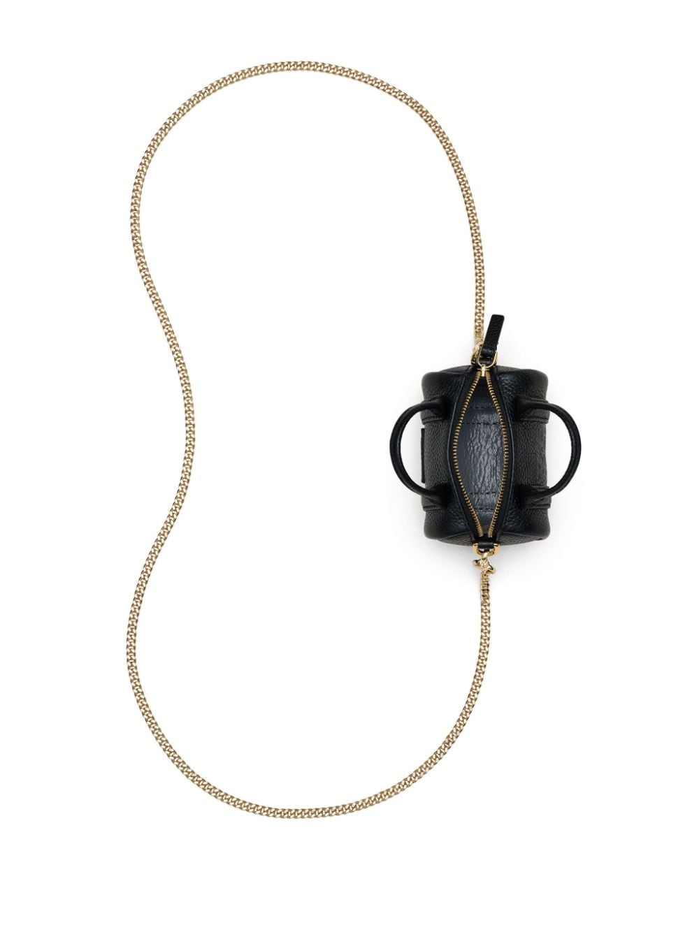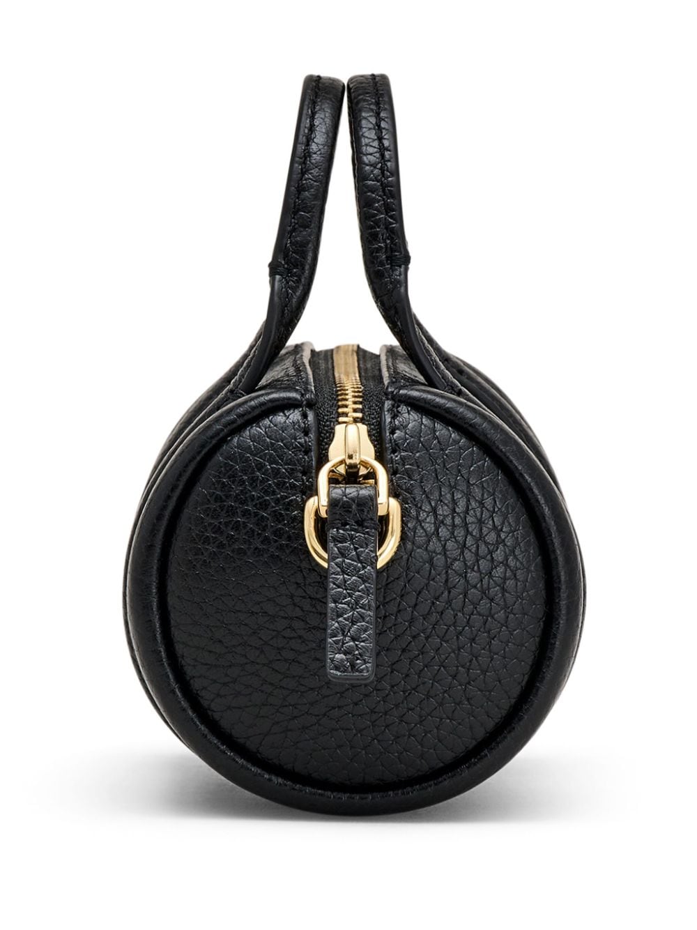 black leather debossed logo to the front logo patch to the rear gold-tone hardware two rolled top handles detachable shoulder strap curb chain zip-fastening compartment