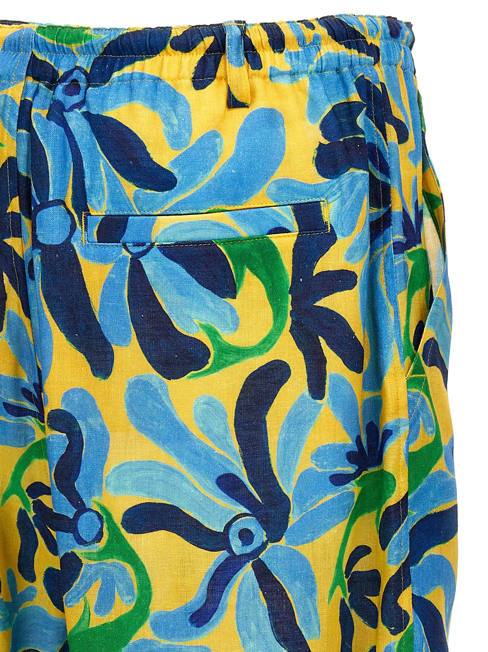No Vacancy Inn' high Summer capsule linen and viscose bermuda shorts with all-over print, elastic and drawstring at the waist, a zipper and button closure, pockets.