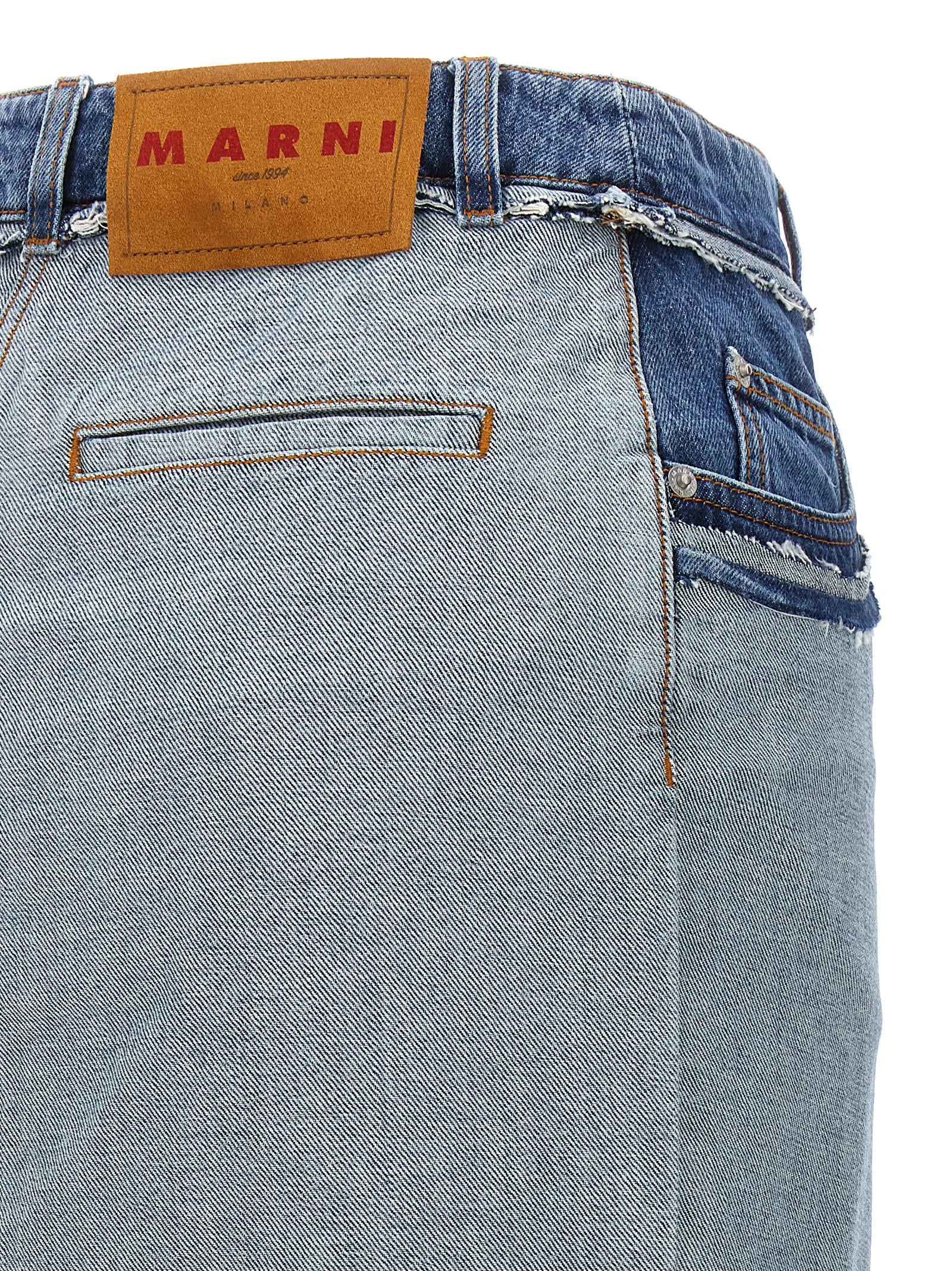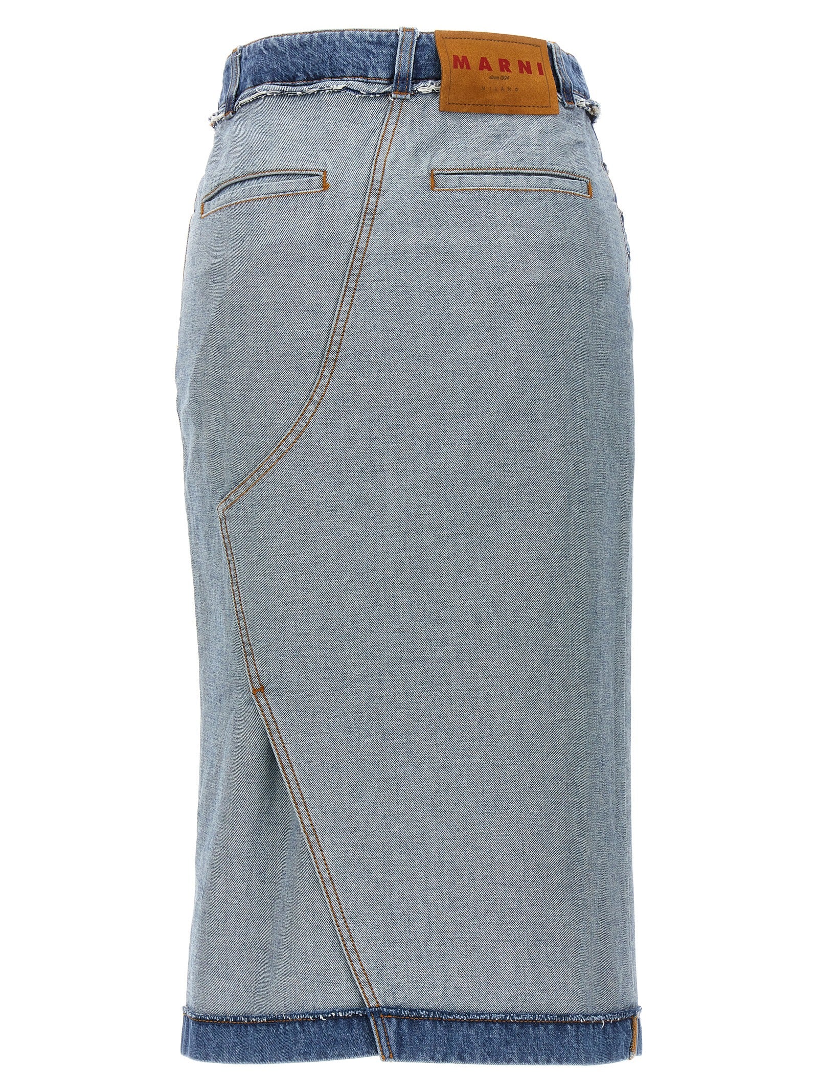 Midi skirt in reversed effect denim with frayed hems, split at the back.
