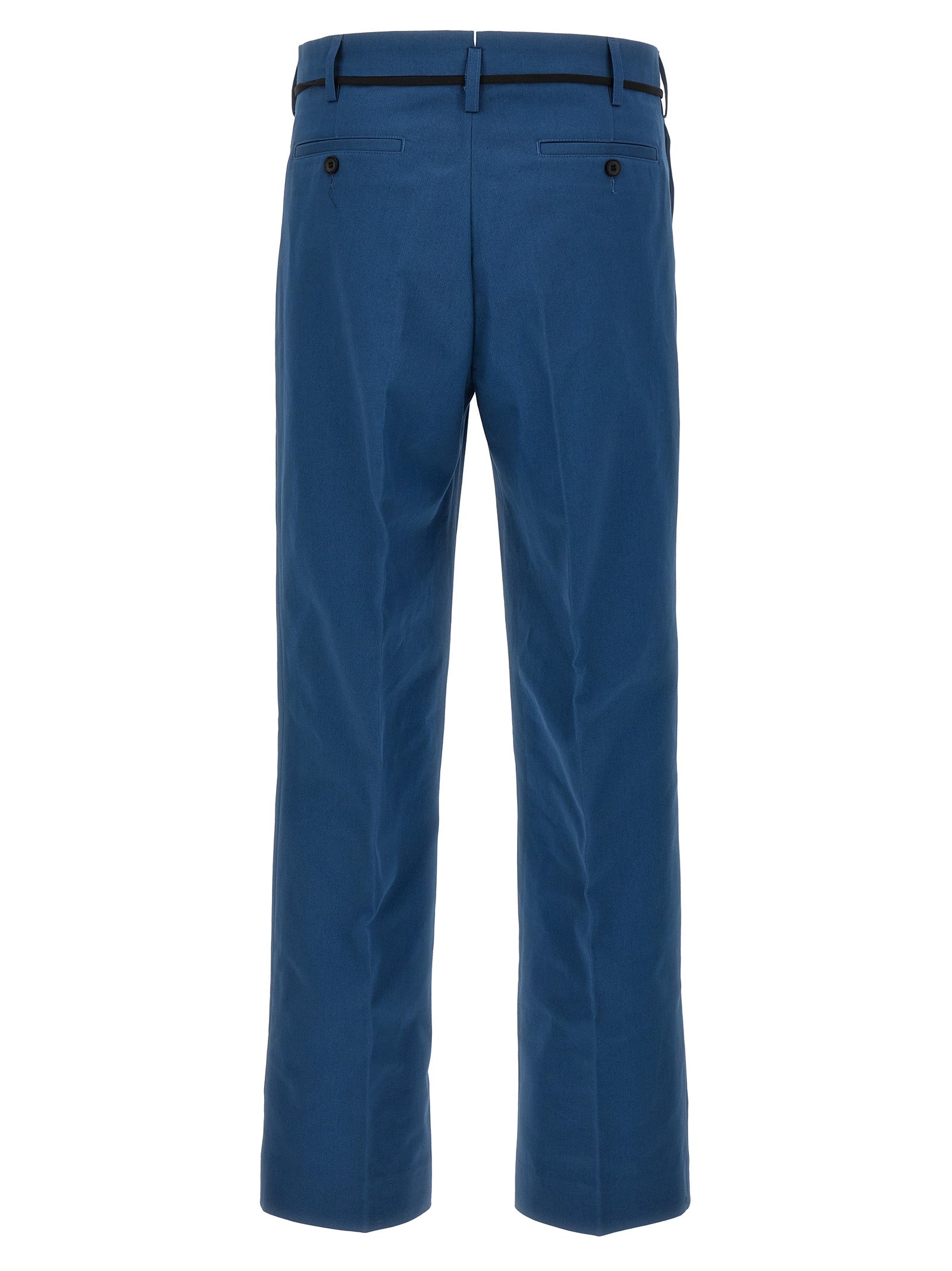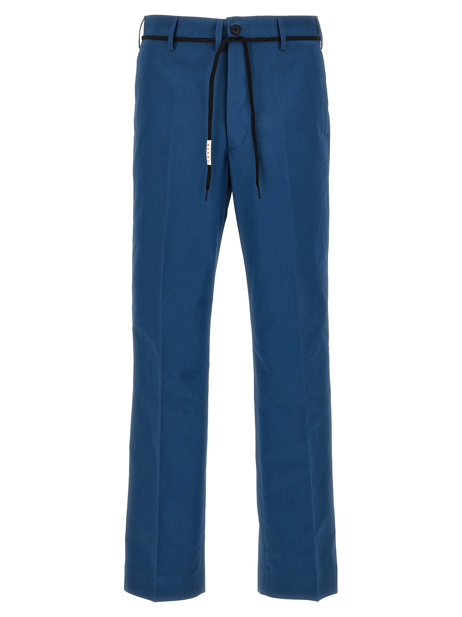 Classic model trousers in cotton gabardine with front stretched pleat, button closure, adjustable lanyard with logo at the waist.
