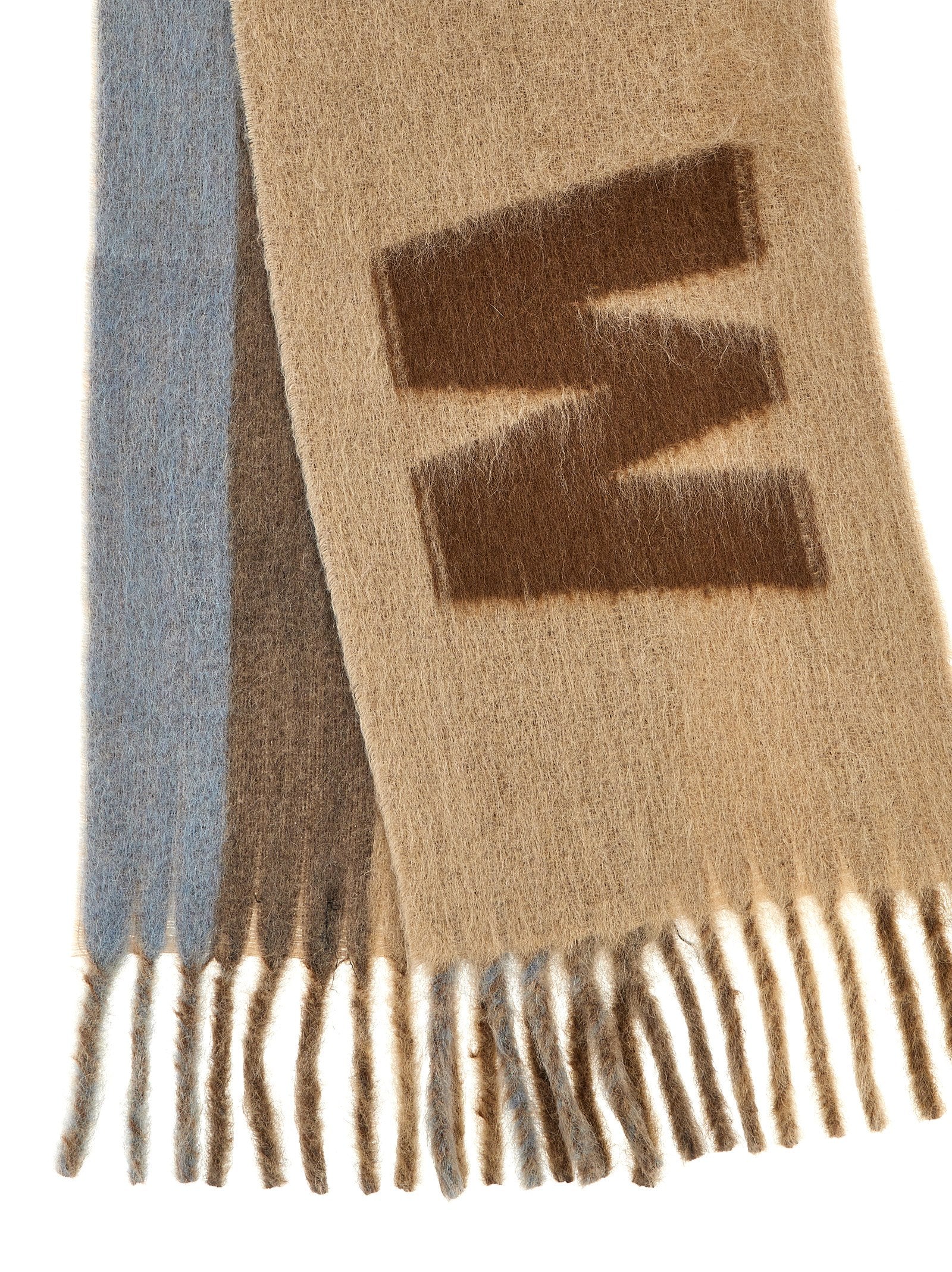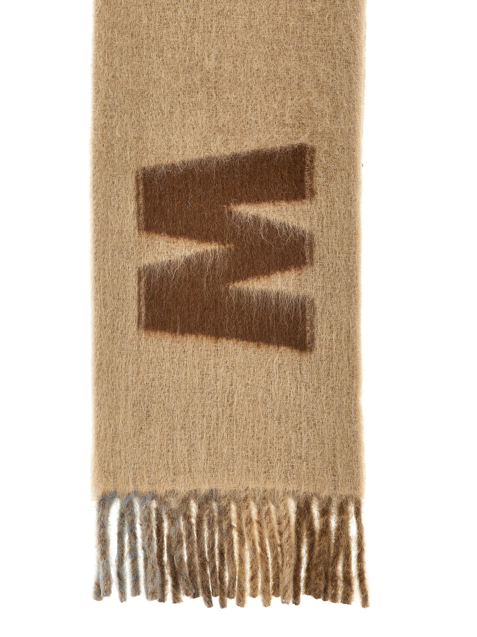 Wool blend scarf with contrast 'Maxi Marni' logo and fringed trims.