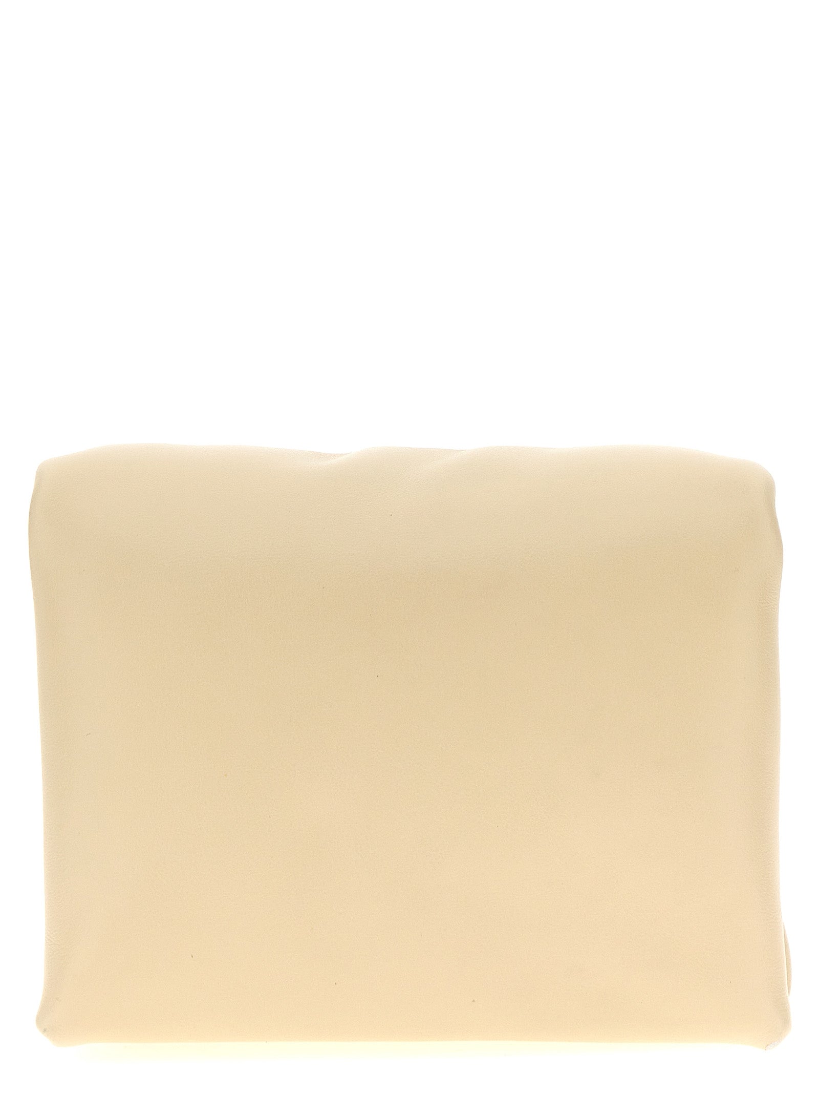 'Prisma Mini' smooth padded leather clutch bag with leather shoulder strap, flap closure.