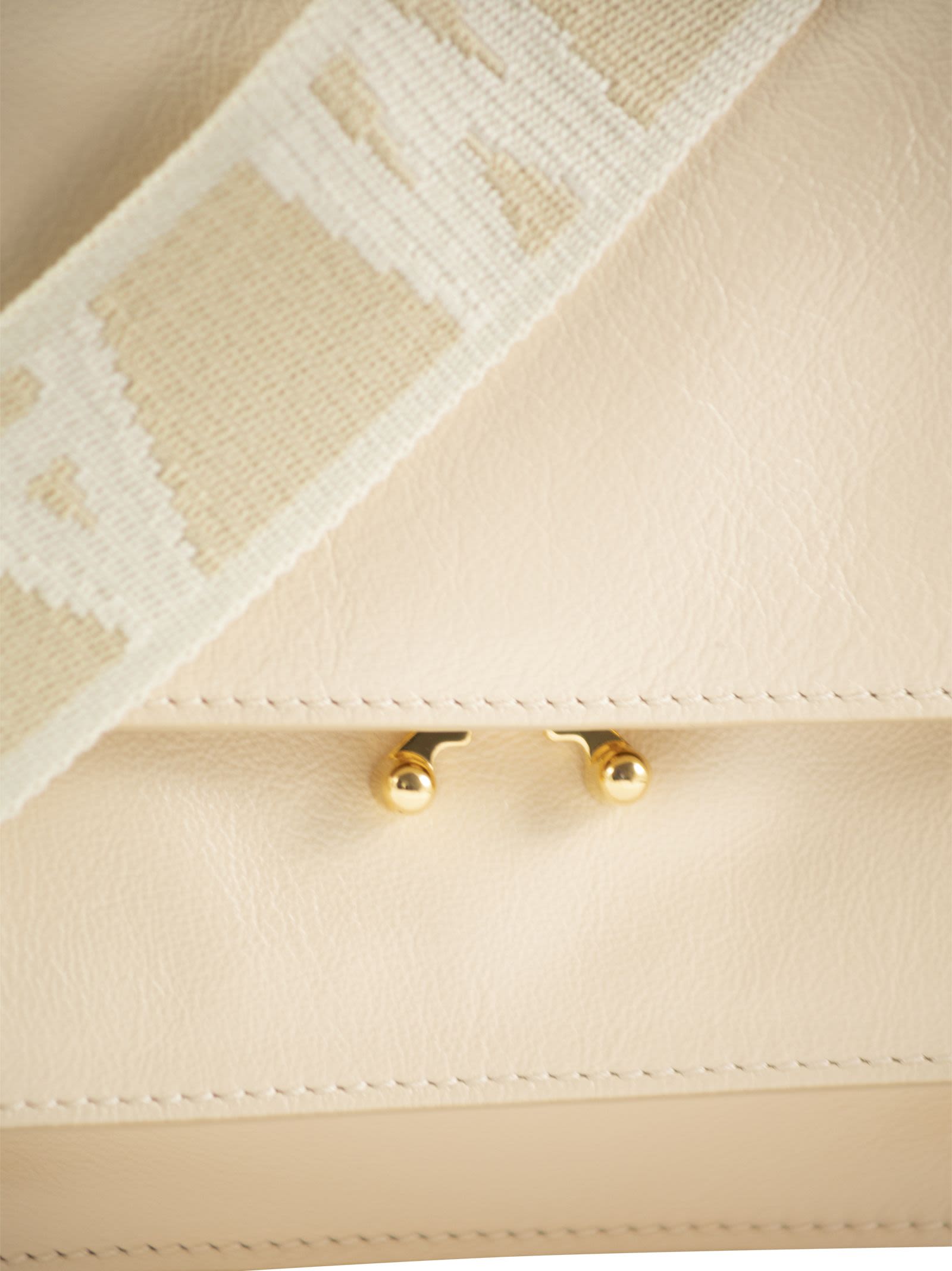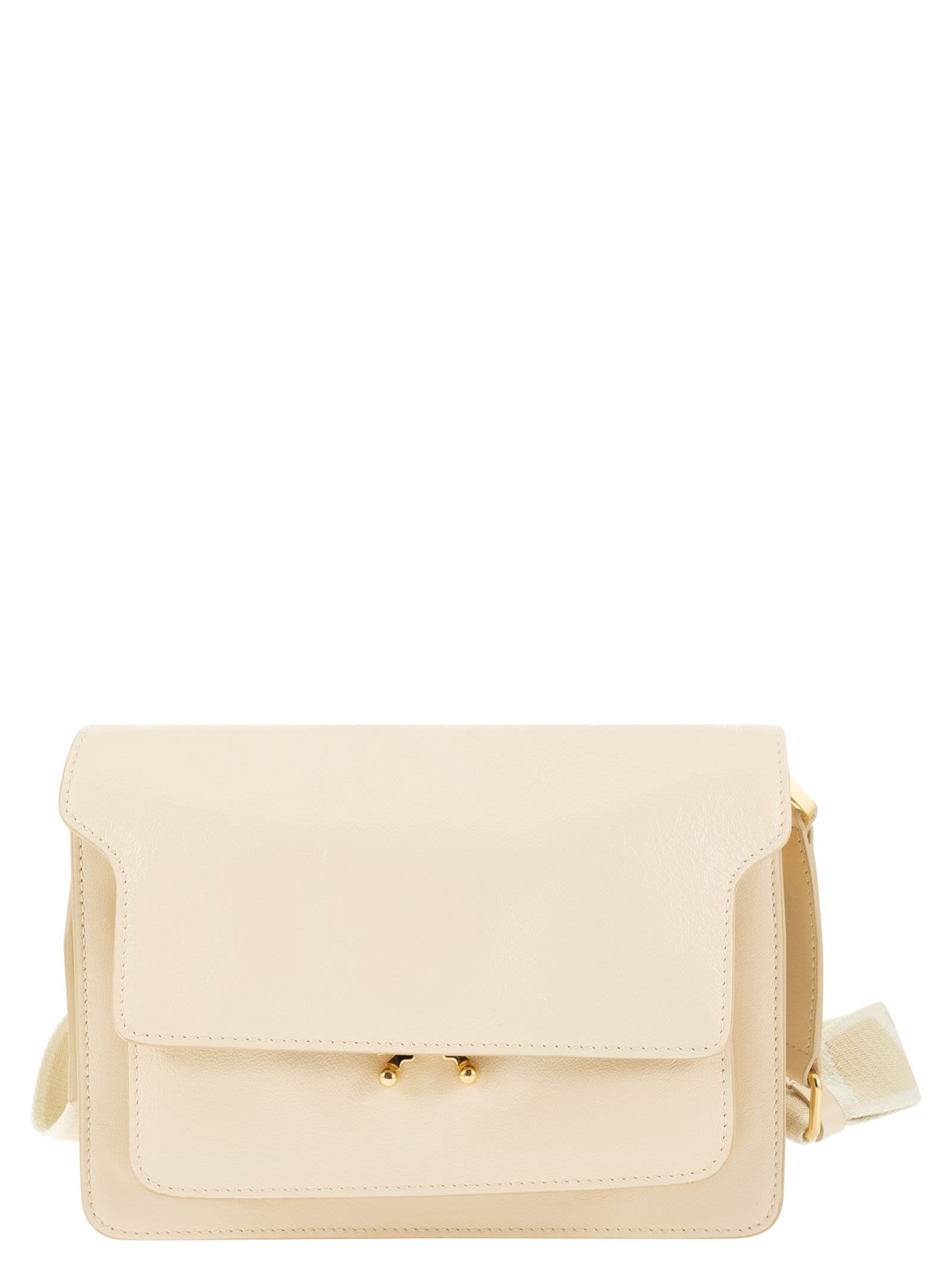 Trunk Soft medium shoulder bag in tumbled leather. One zipped pocket and two internal compartments. Front pocket under flap, rear slit compartment. Finished with an adjustable fabric shoulder strap with contrasting colour Marni lettering. Push-lock closure. Gold-coloured metal elements. - Made in Italy - Fabric lining DESIGNER ID: SBMP0103Q5 P2644 00W12