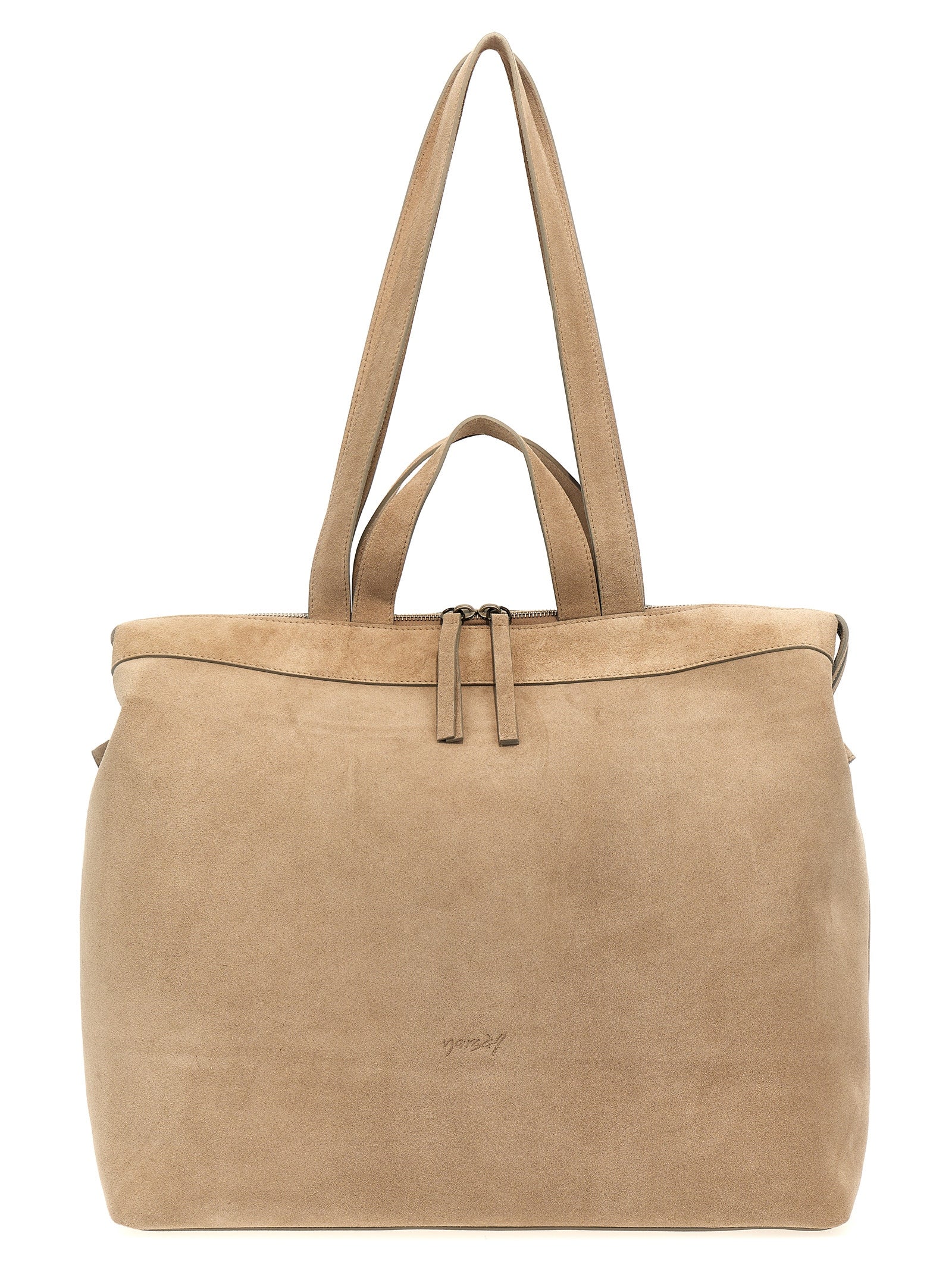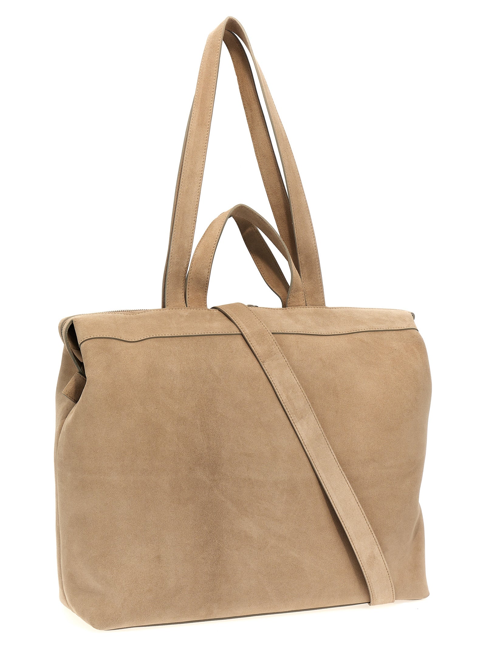 Borso' leather shopping bag with zip and double handle with removable and adjustable shoulder strap.