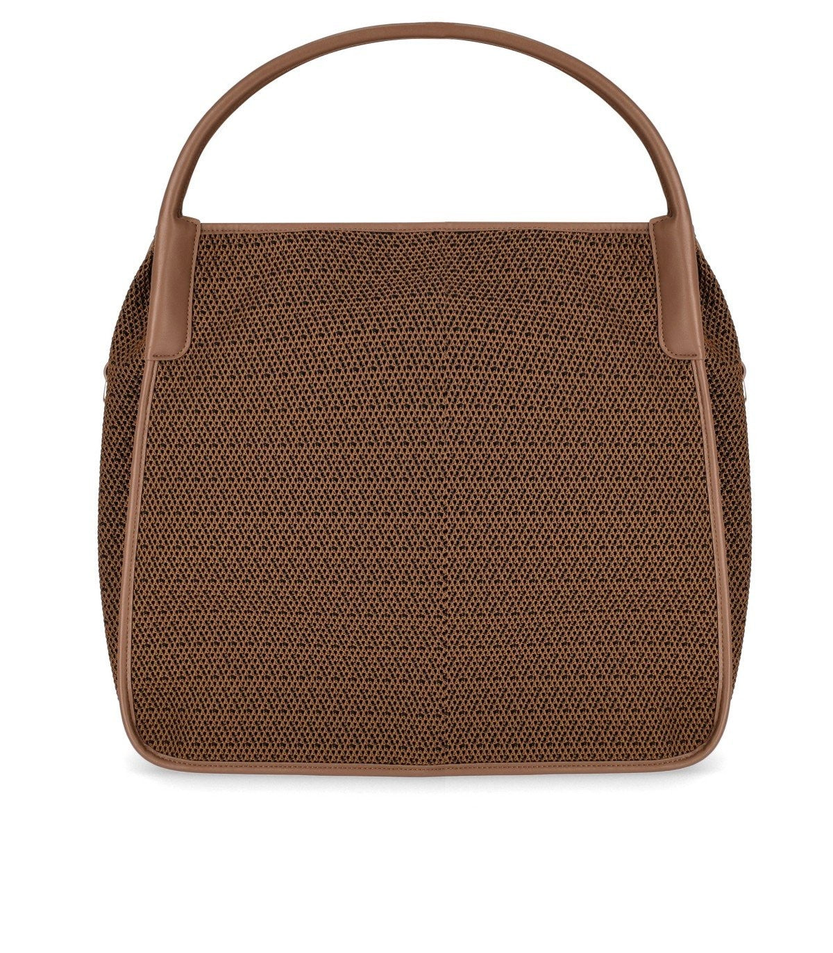 Hobo bag Freda model by Max Mara Beachwear, made entirely of coated fabric with a refined woven texture. The design features double handles and an adjustable and removable shoulder strap, for versatile carrying by hand, on the shoulder, or crossbody. The round and soft volume is defined by side pleats that enhance its shape. The interior is lined and equipped with a zip pocket and a snap button closure. Completed with a 'Max Mara Beachwear' embossed patch applied on the front. Measurements in centimeters: 40 x 44 x 20 (H x W x D) Handle length: 50 cm Shoulder strap length: 102 cm Composition: 100% Polyester