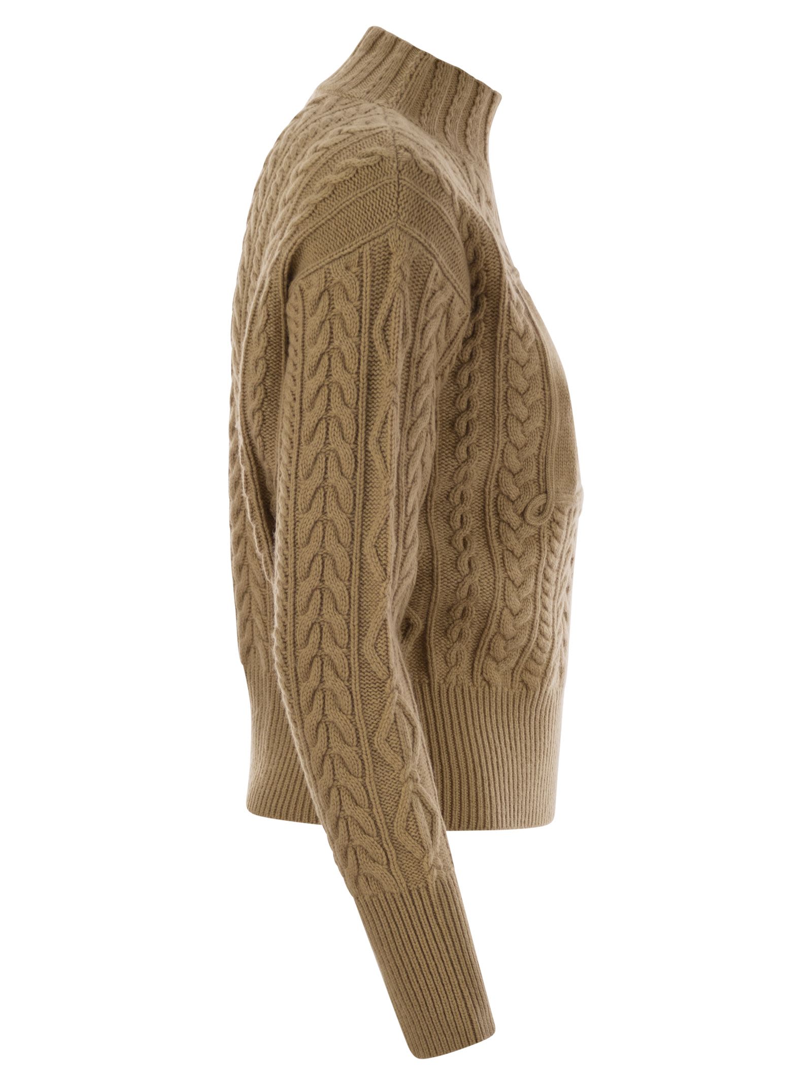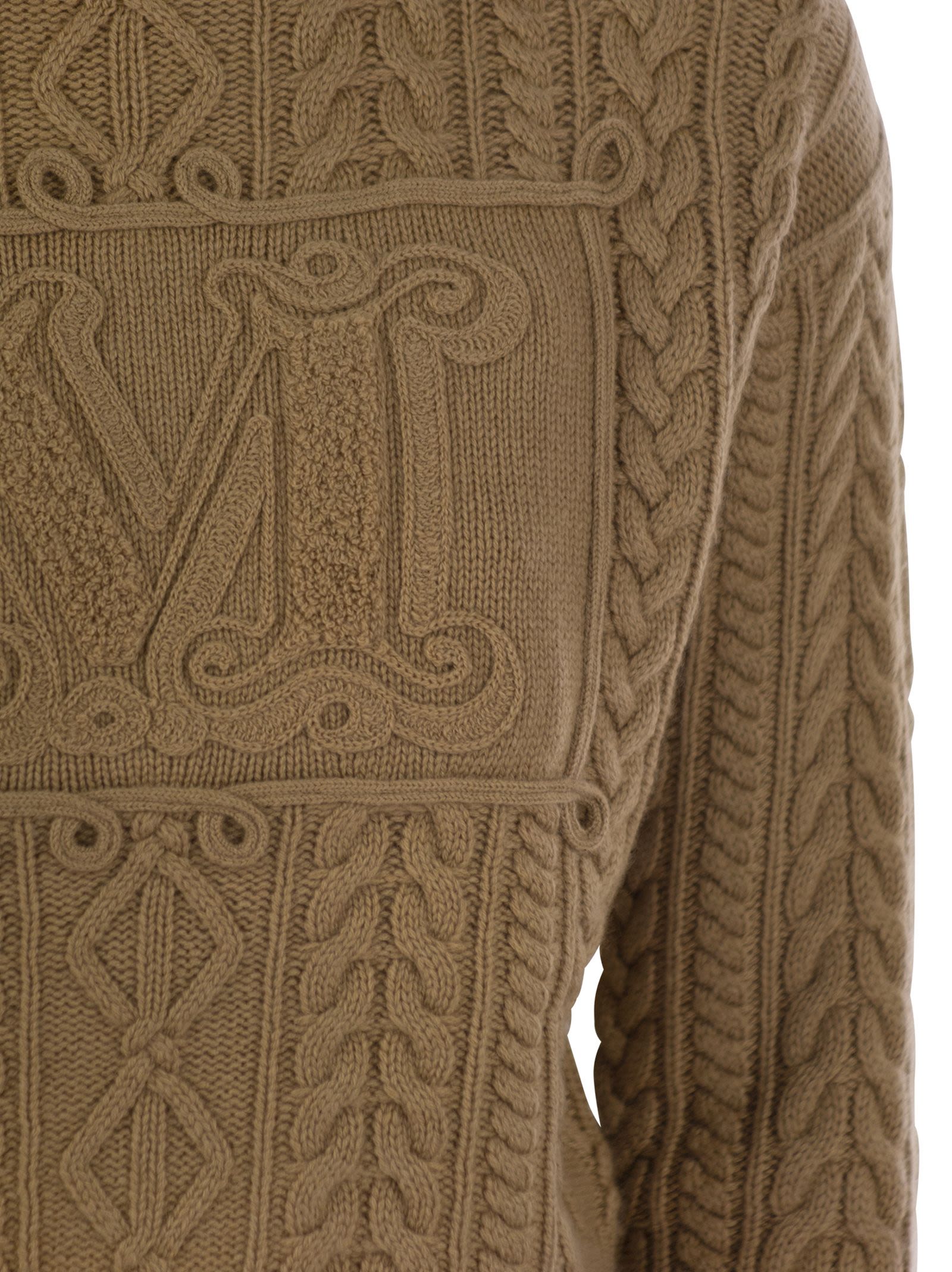 Crewneck sweater with a small volume, made of fine wool and cashmere yarn. The style features a braid pattern with diamond detailing and a stockinette stitch frame with a cornely embroidered M Monogram motif on the front. Finished with ribbed edges. - Ribbed edges - Logo on the front - Stockinette stitch - Cable knit DESIGNER ID: 2511361041600 005