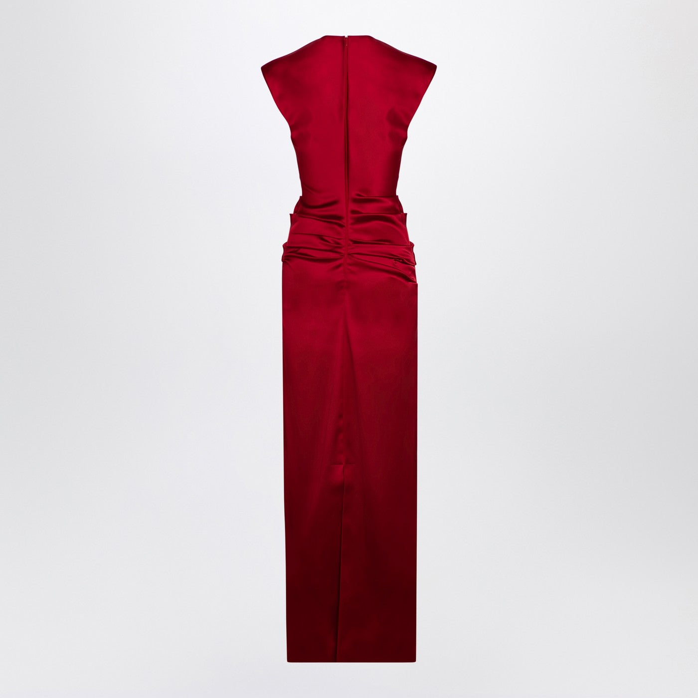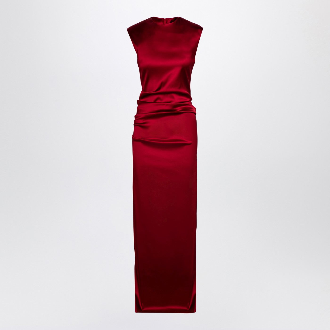 Red long sleeveless dress by Max Mara Pianoforte, featuring ruched waist detail, back zip fastening and back slit.