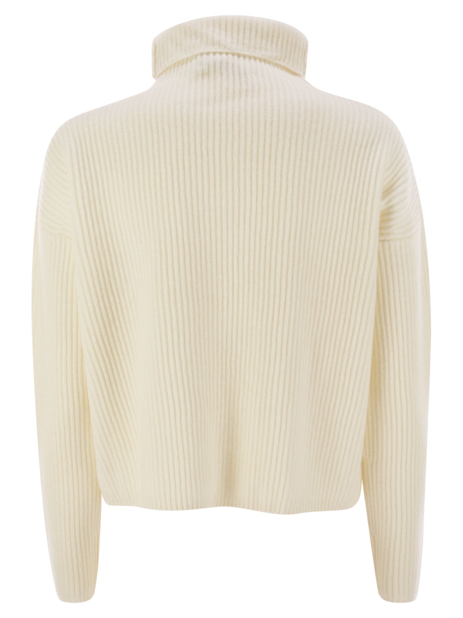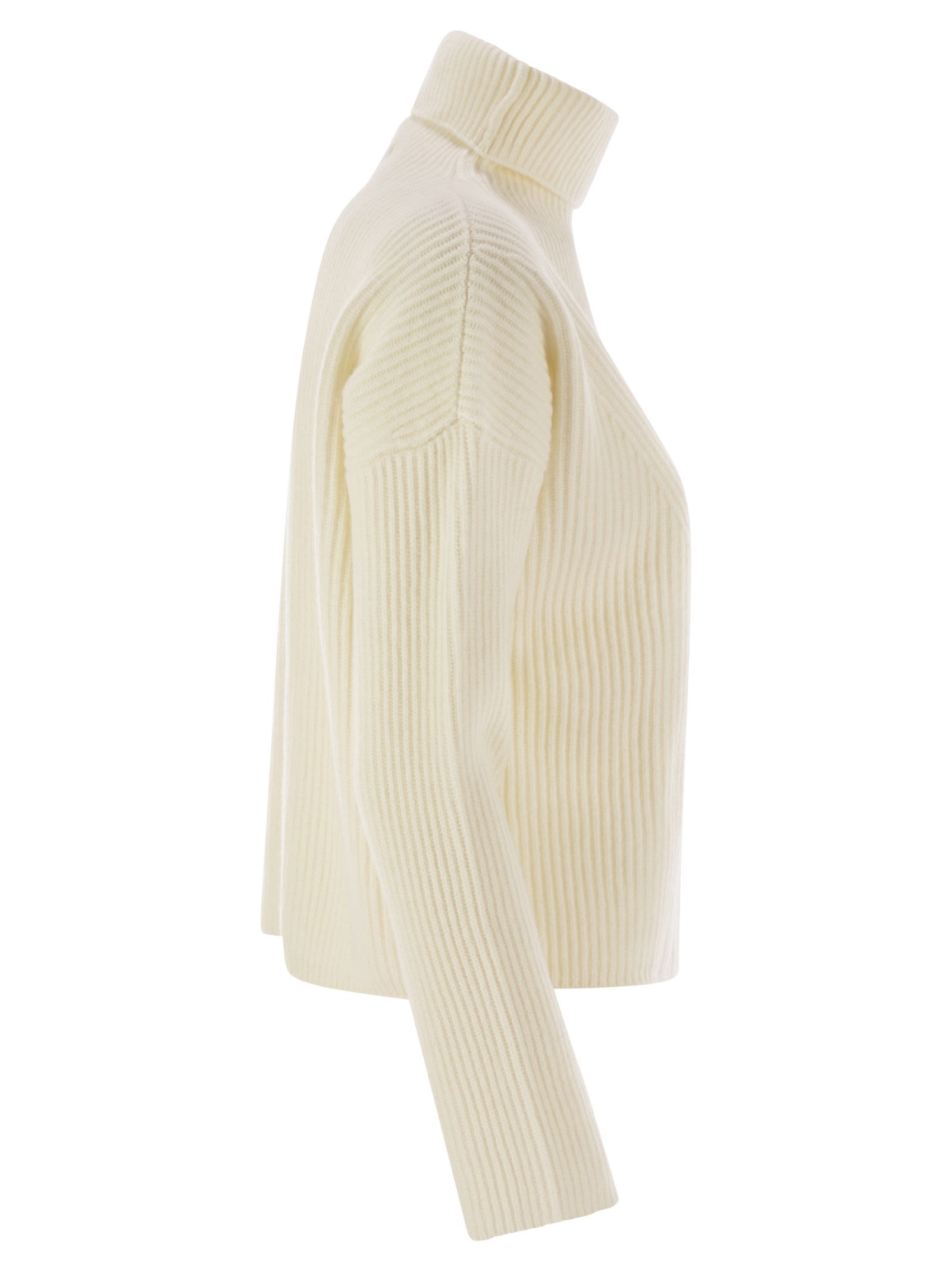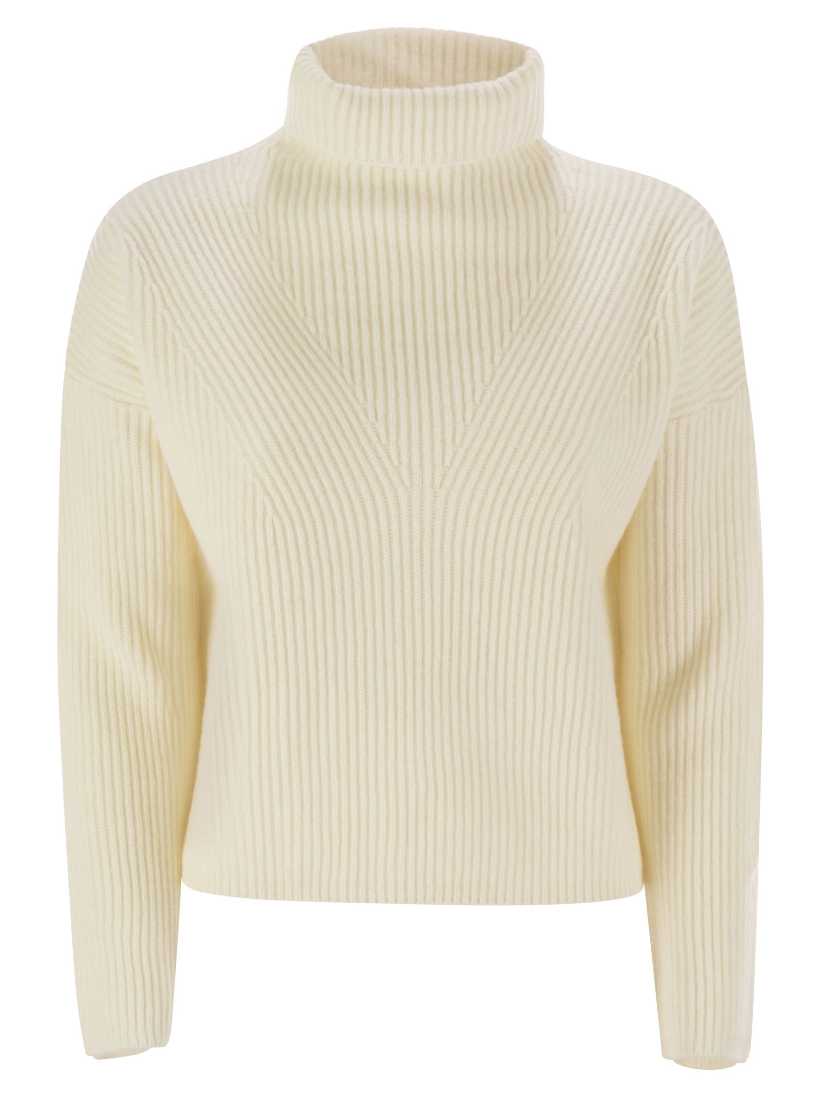 Turtleneck sweater made of fine wool and cashmere yarn, featuring a ribbed knit and long, low-cut sleeves. Straight model with soft volume. - Soft fit - High neck - Ribbed knit DESIGNER ID: 2426366022600 001
