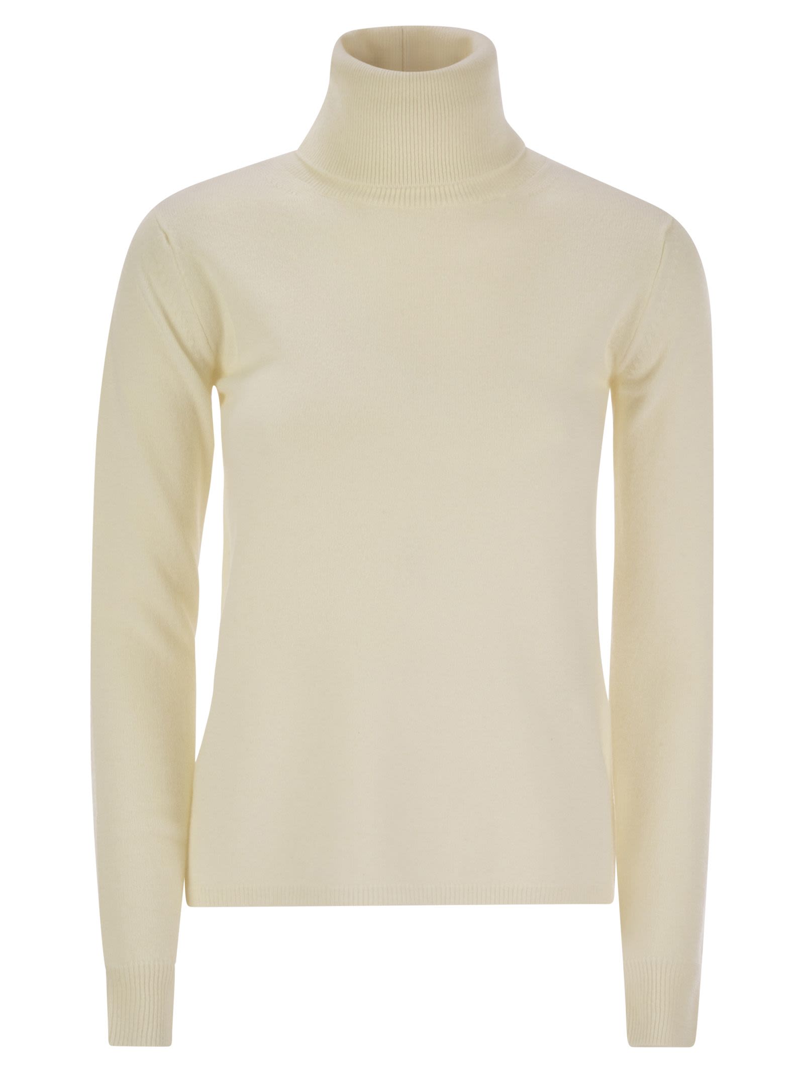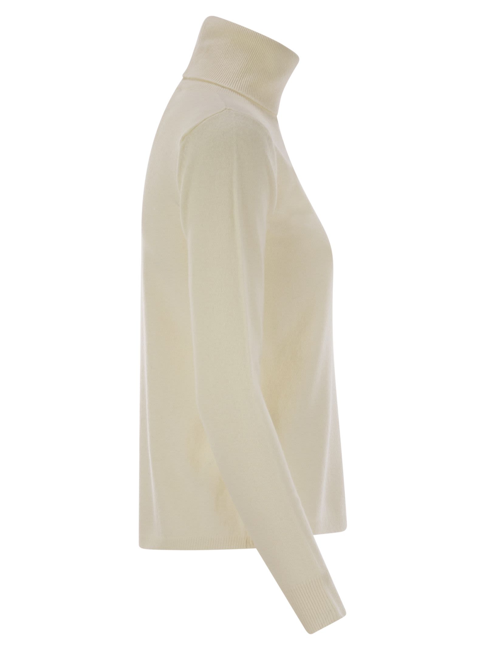 Turtleneck sweater made of cashmere blend yarn. Regular fit model with a feminine silhouette, finished with a high collar, ribbed cuffs and hem. - High neck - Regular fit DESIGNER ID: 2426366072600 001