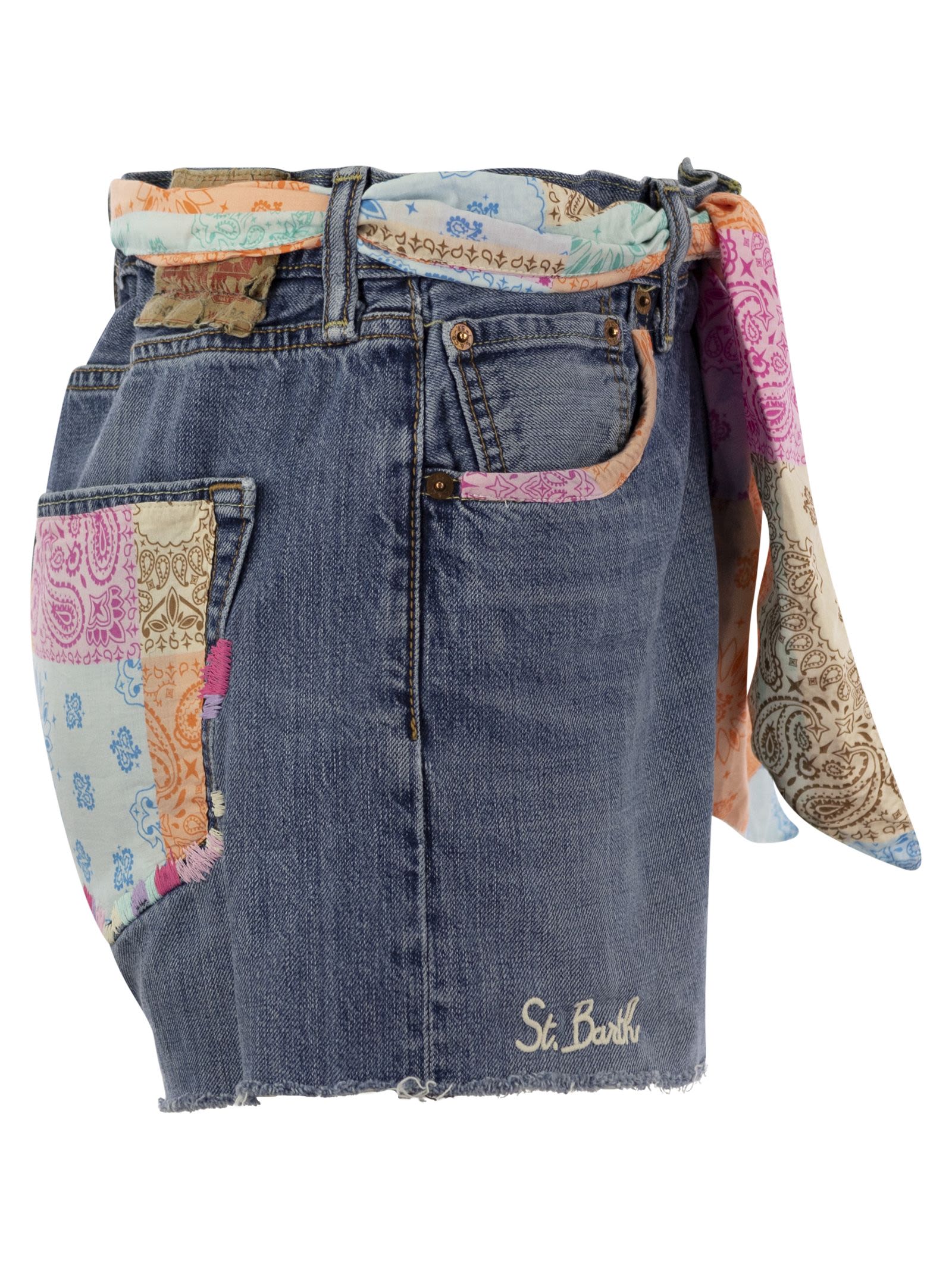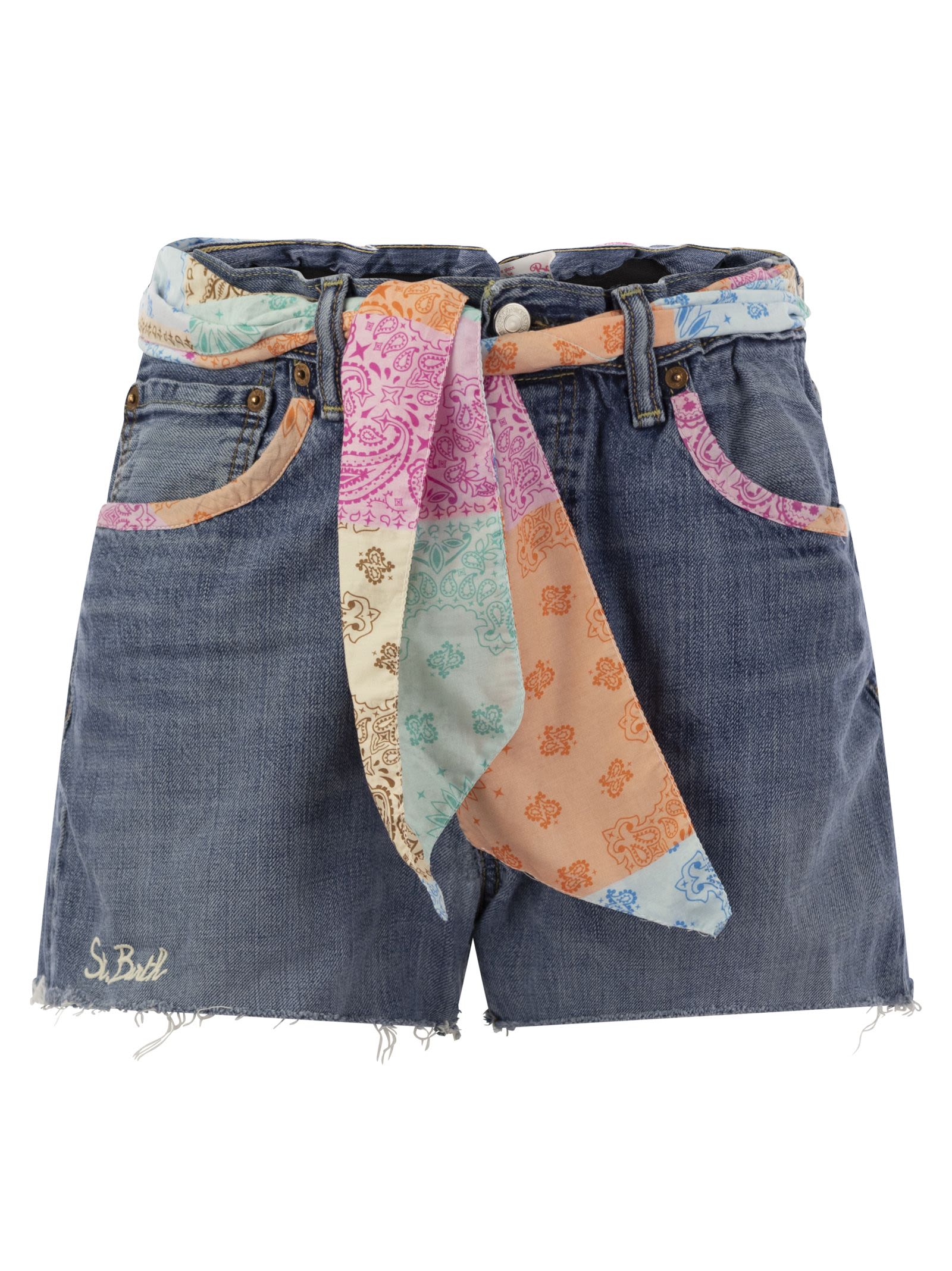 Mc2 Saint Barth Denim Shorts With Belt And Patches