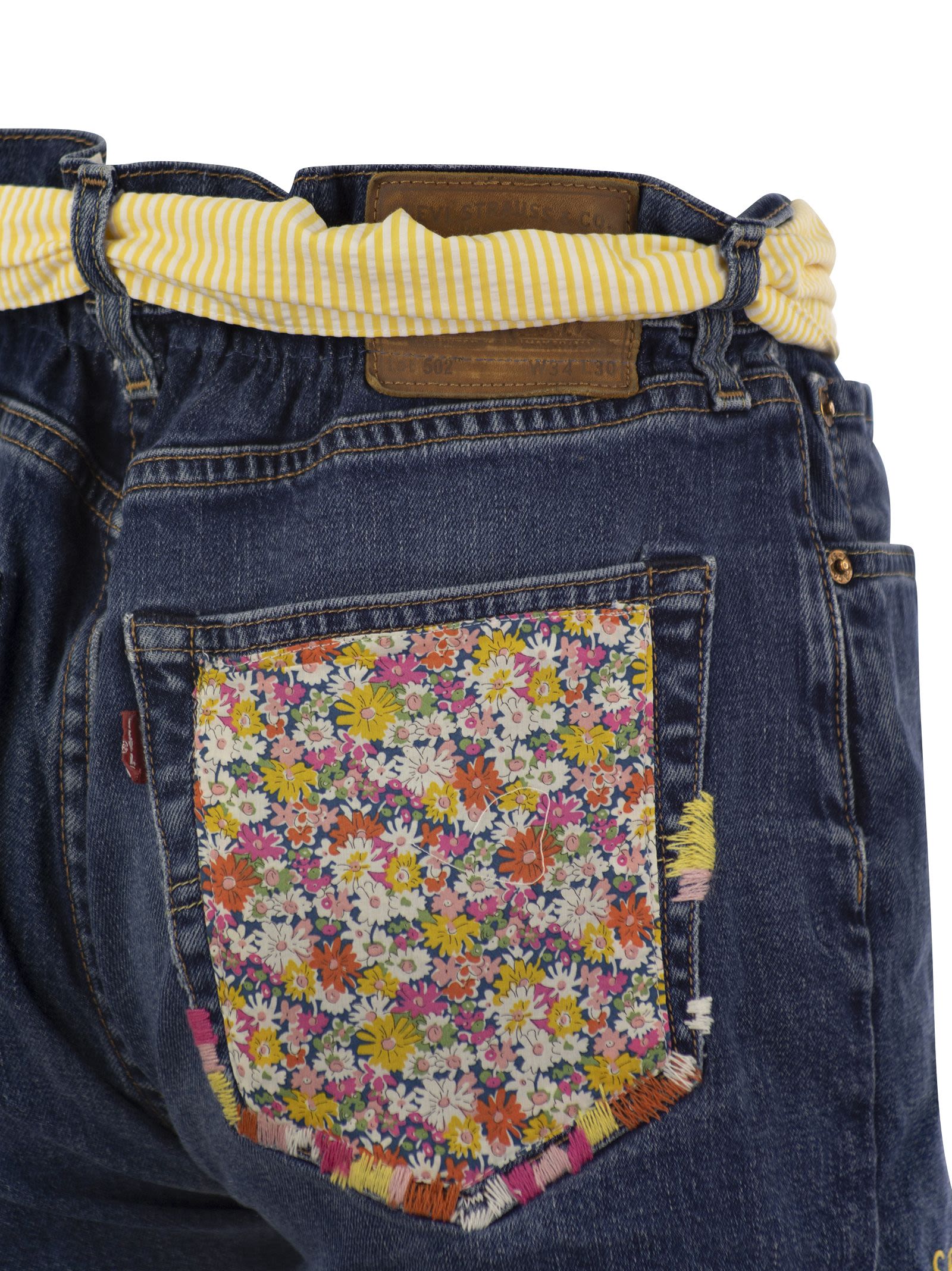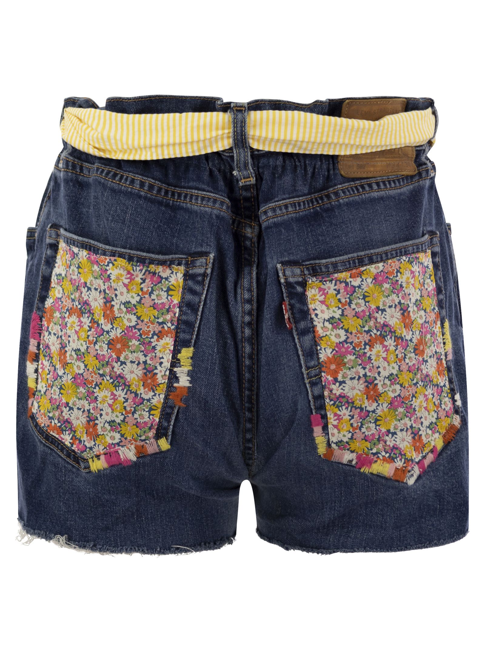 These shorts are part of the Mc2 Saint Barth Upcycled limited edition collection, born out of a commitment to conscious fashion and the principles of circular design, with the aim of giving new life to vintage clothes, bags and accessories through redesign and reworking. The design incorporates a touch of vintage style combined with a contemporary attitude, complemented by the embroidered logo for a refined and iconic finish. - Women's denim shorts - Handmade from recycled Levi's denim - Woven pockets - Cotton sash DESIGNER ID: ARZ0001 01456F