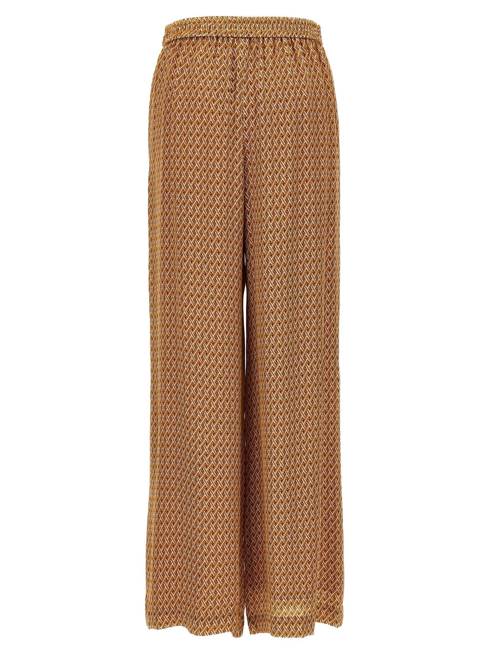 Viscose and silk blend trousers with all-over print, straight leg and elastic waistband.