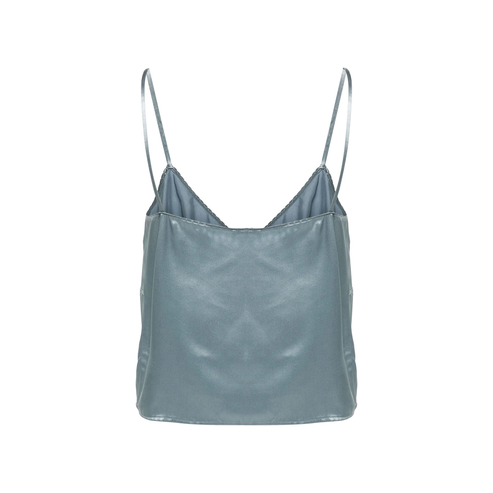 Composition: 52% Acetate 48% Viscose Sleeveless Dry clean Vneckline Straight hem Pleated details Thin straps Scalloped hem Cropped design Front application with logo Made in Italy