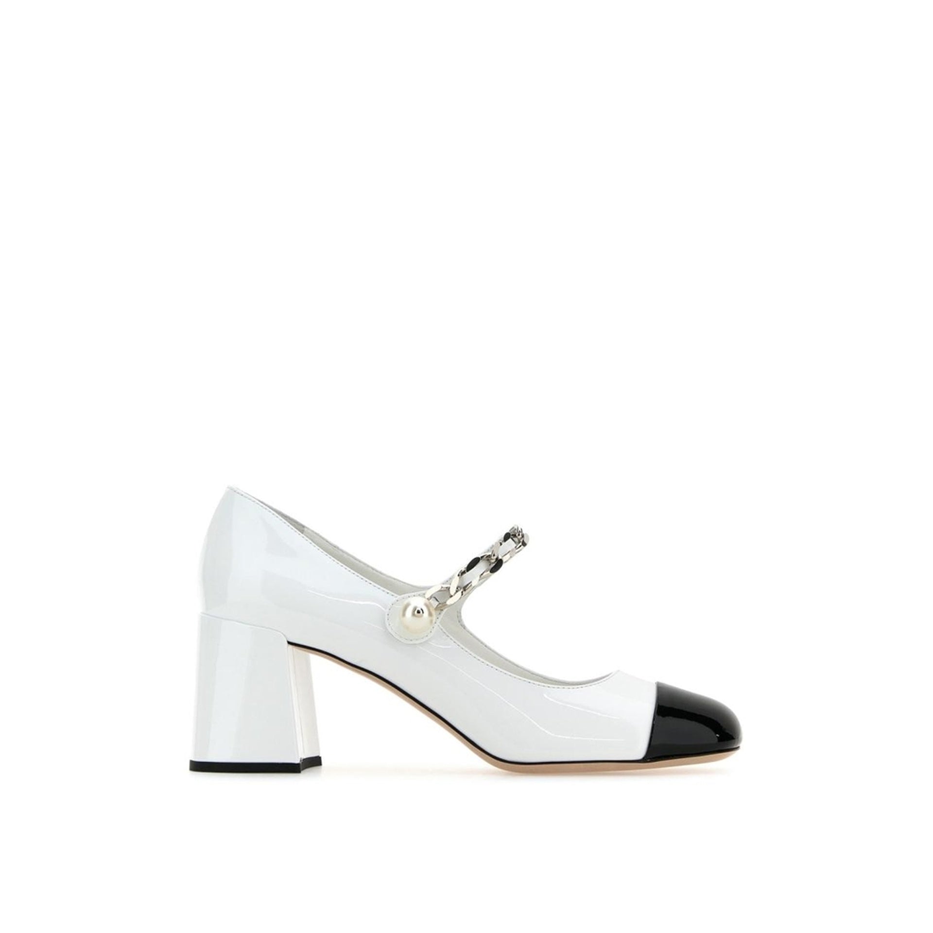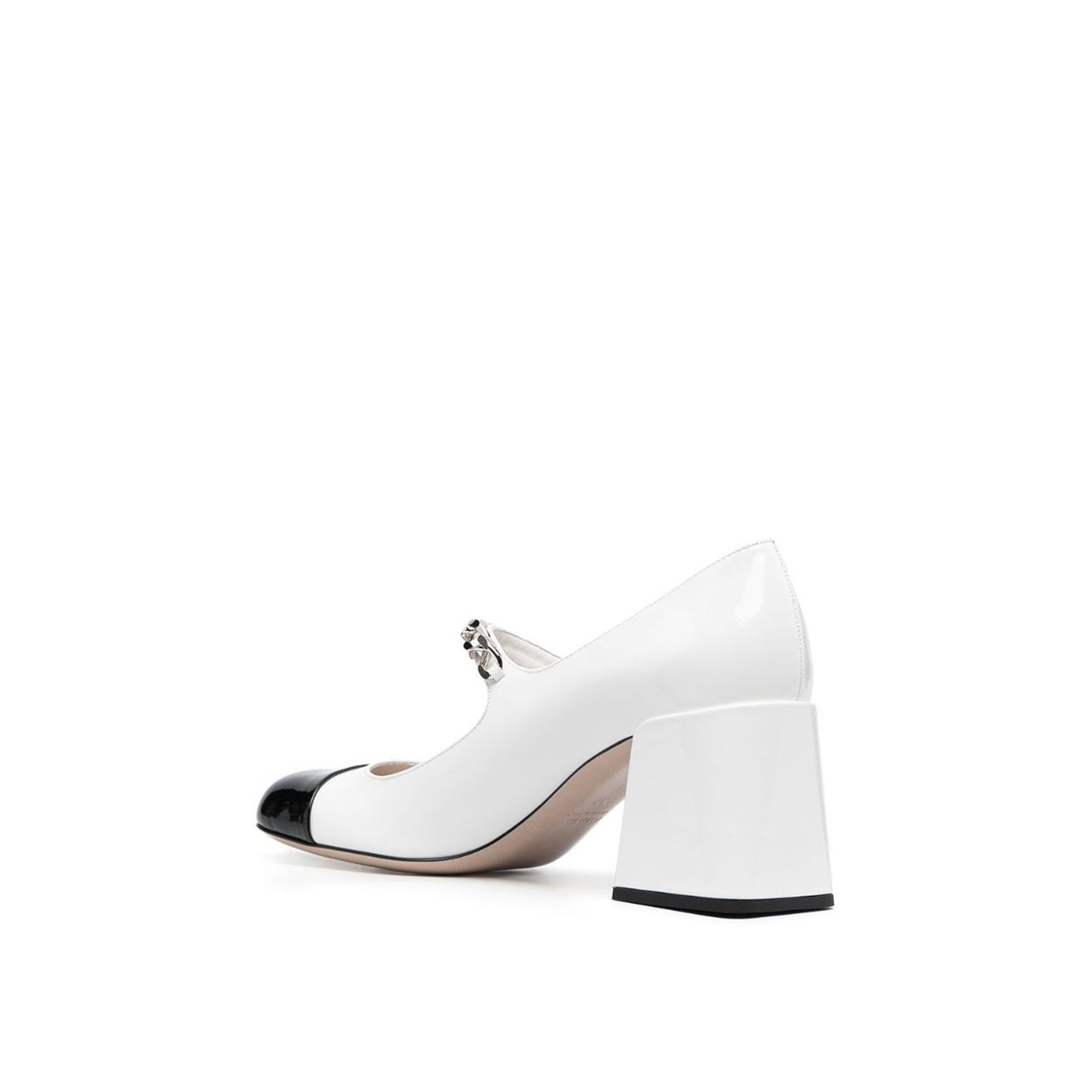 - Composition: 100% calf leather - Inner: Leather - Insole: Leather - Sole: Leather - Round toe - Patent effect - Branded insole - Heel 6,5 cm - Signature pearl embellishment - Contrast toe - Made in Italy -