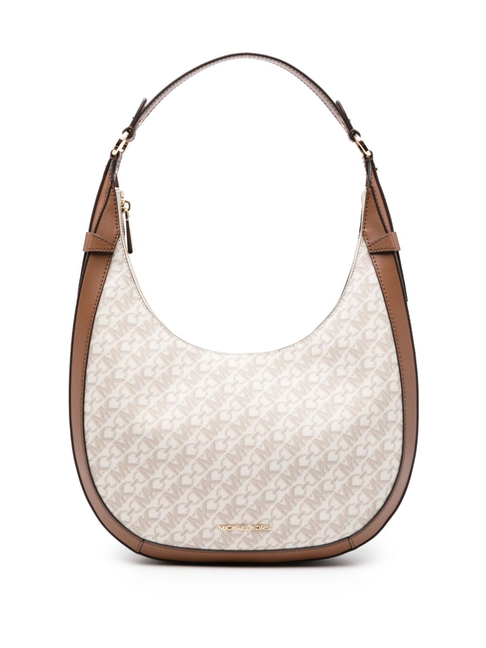 brown/beige canvas/calf leather monogram print curve-edge body single flat top handle logo lettering to the front main compartment internal logo patch internal patch pocket logo-jacquard lining gold-tone hardware top zip fastening This piece comes complete with a protective dust bag.