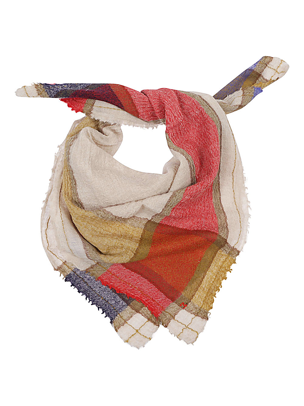 Handmade in wool, checked pattern, characteristic red embroidered "M" detail, features a fringed edge at the ends for a perfectly lived-in touch. Due to its handcrafted nature, it may have some irregularities which add to the charm of its handcrafted design.