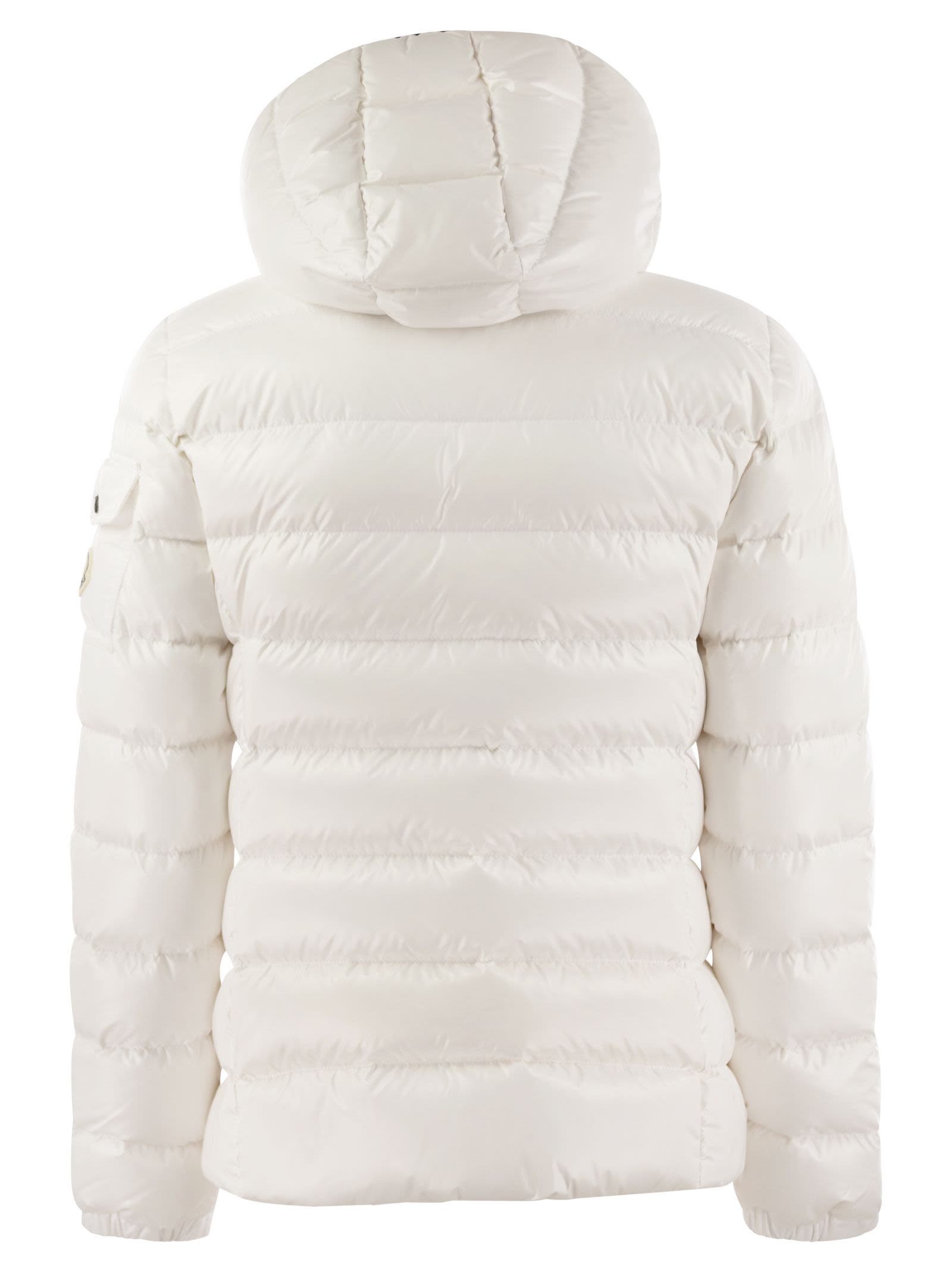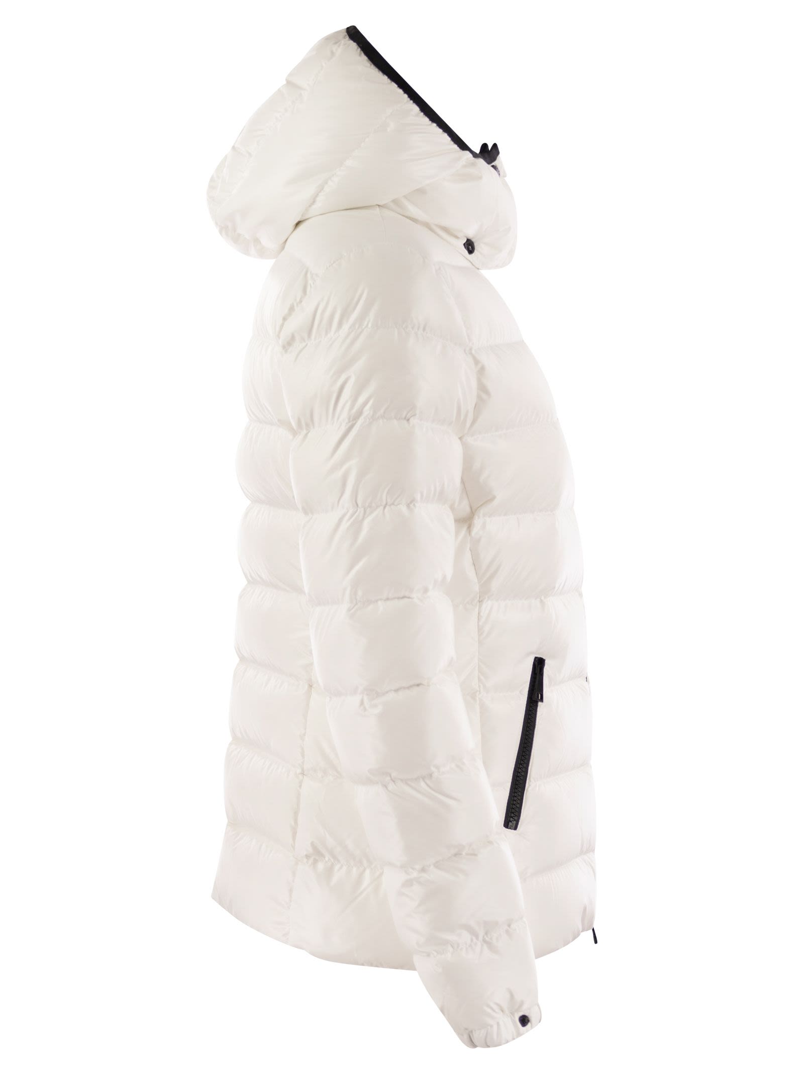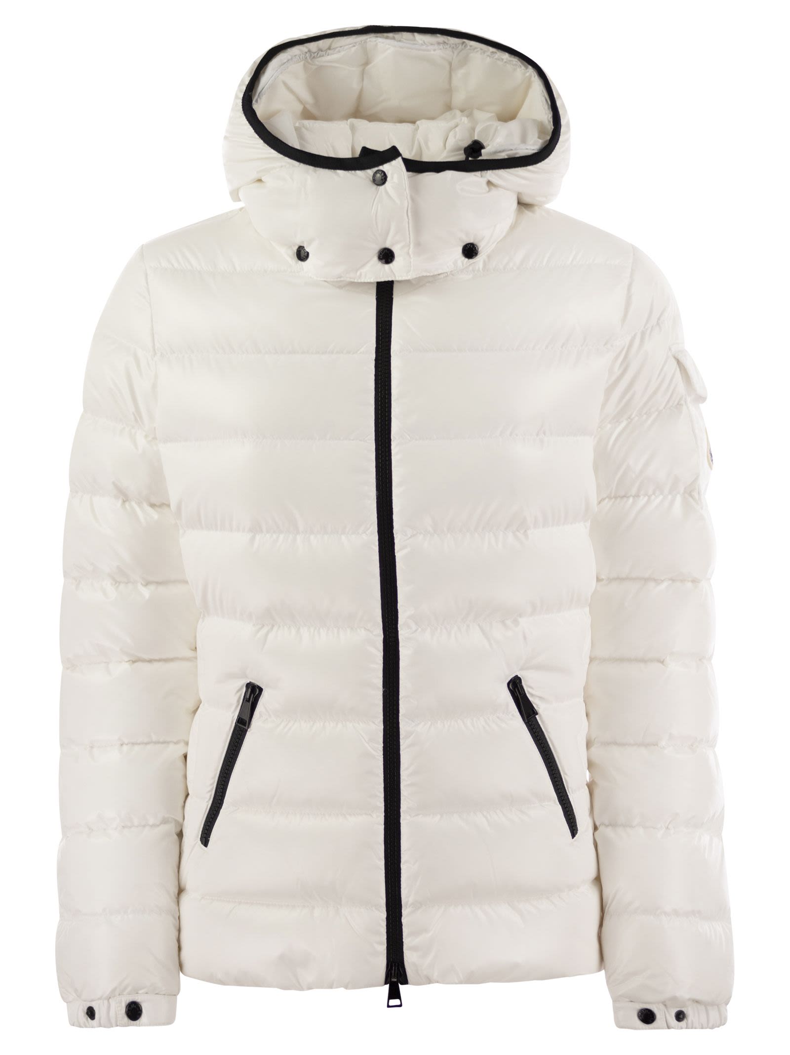 A symbol of Moncler DNA, the Bady women's down jacket is made of glossy laqué nylon with the iconic boudin quilting. A timeless short model that transcends seasons and trends, it features a striking silhouette with a removable hood and adjustable hem. A Moncler hallmark, the classic patch pocket adorns the sleeve of the Bady. - Made of laqué nylon - Lining in laqué nylon - Feather padding - Removable and adjustable hood with elastic drawstring and press studs - Patch pocket with flap on sleeve - Zip closure - Zipped pockets - Elasticated cuffs, adjustable with snap button DESIGNER ID: J20931A5240068950 032