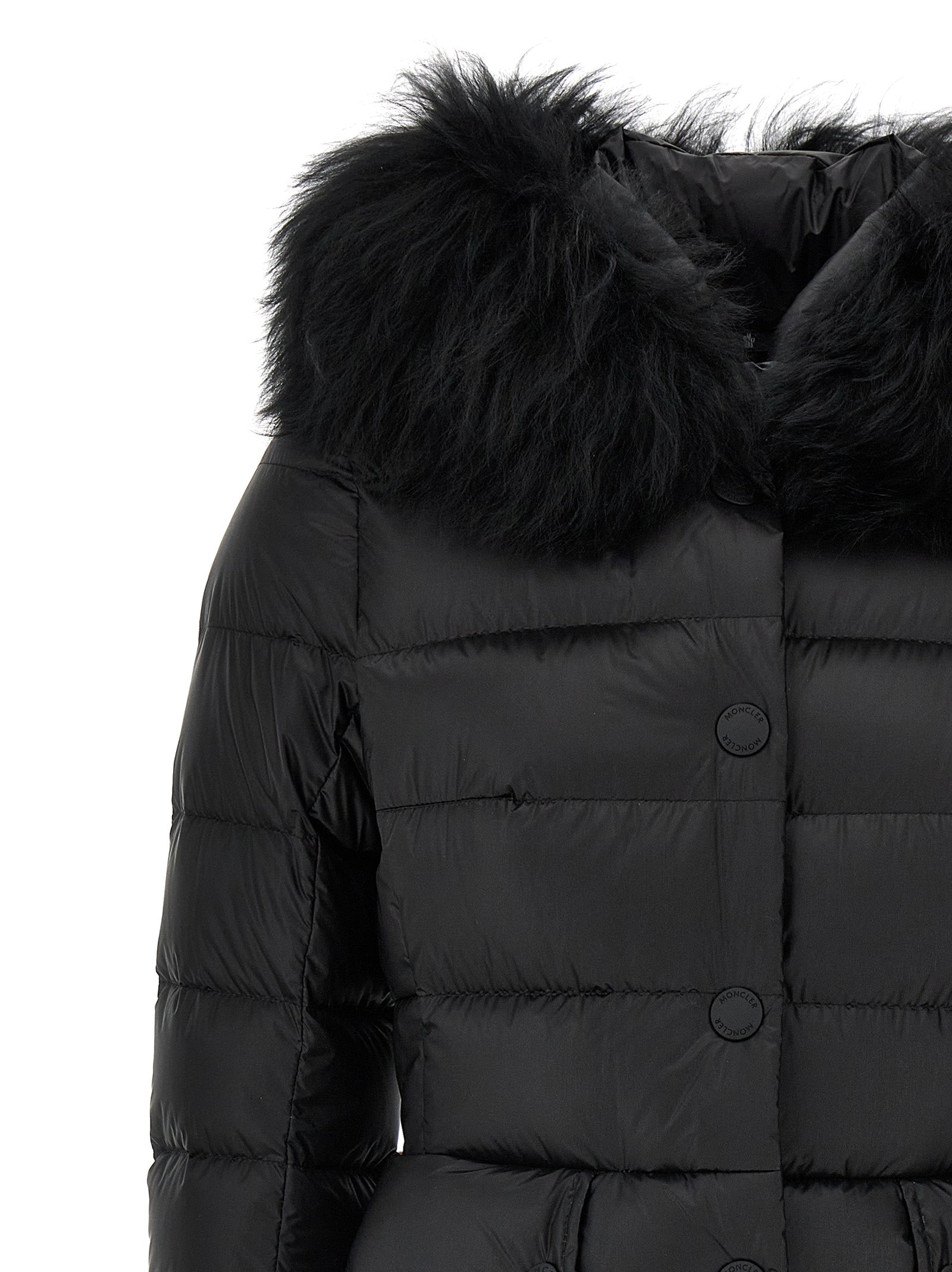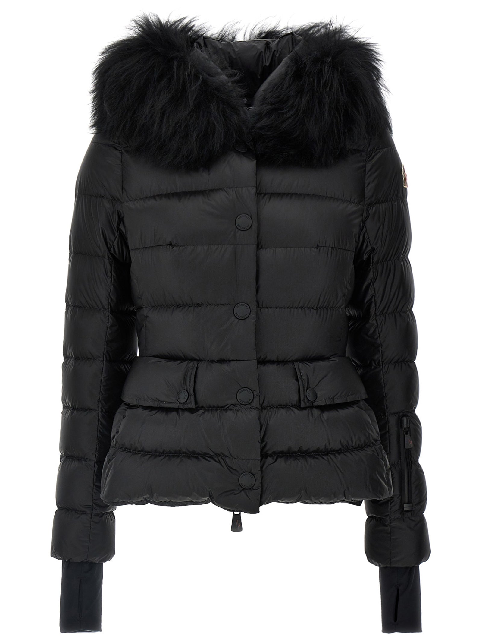 Armoniques' down-filled technical fabric down jacket, zipper and snap-button closure, features hood with removable fur insert, long sleeves with thumbhole cuffs.