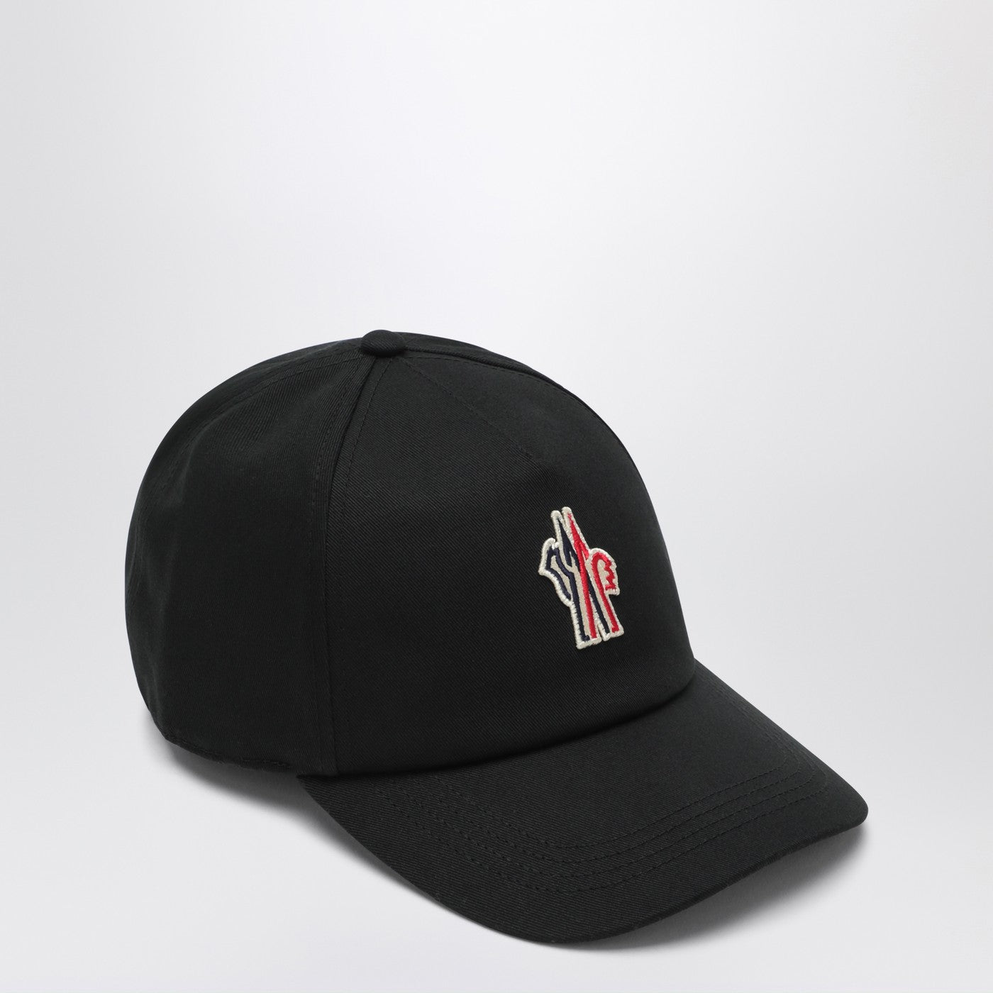 Moncler Grenoble black cotton baseball cap, featuring a logo patch on the front and an adjustable closure at the back.